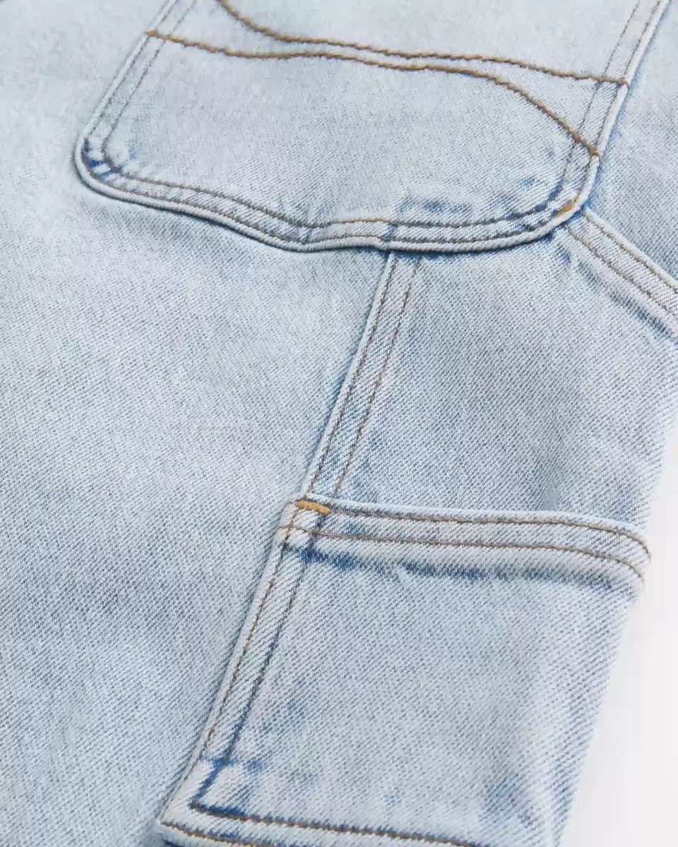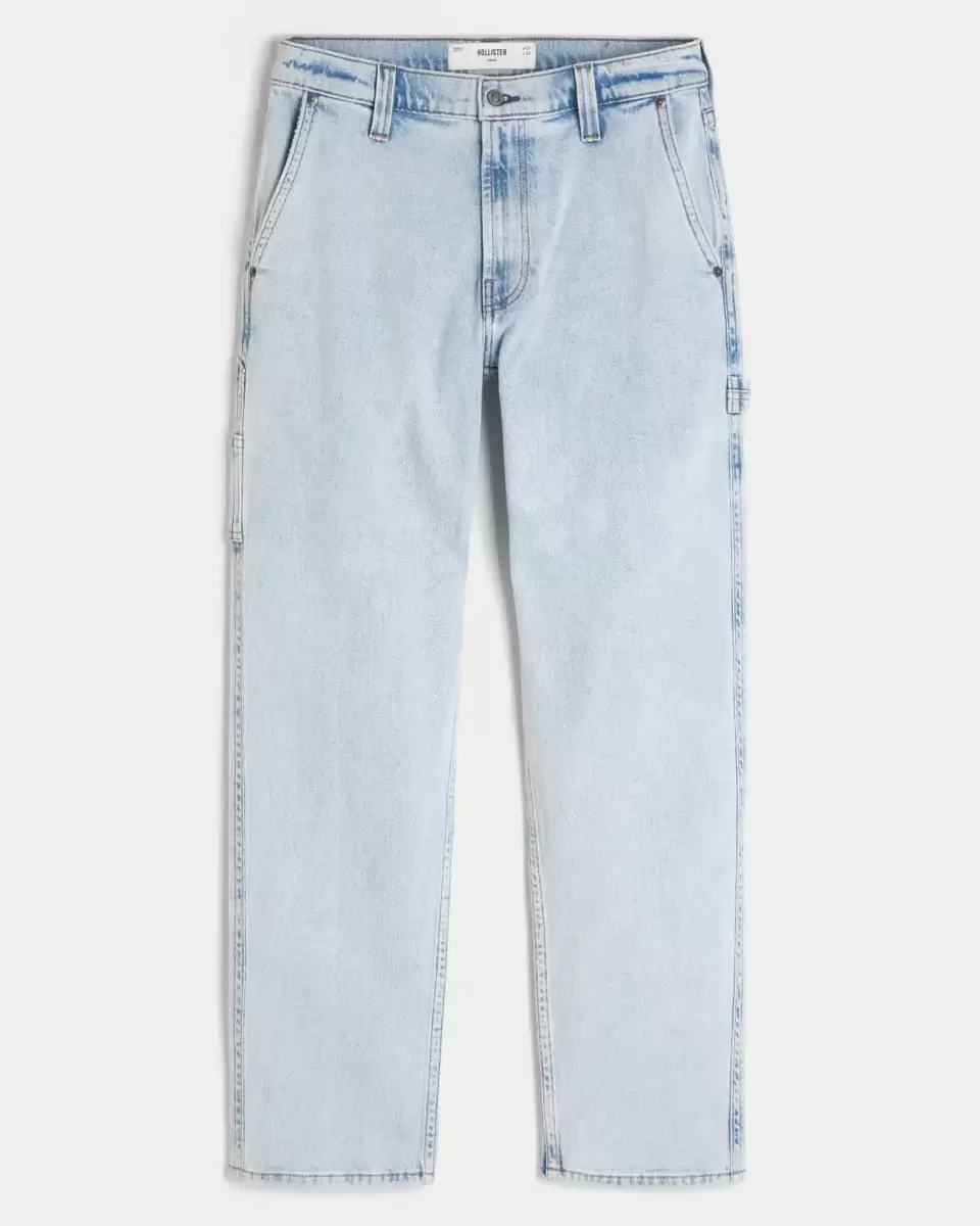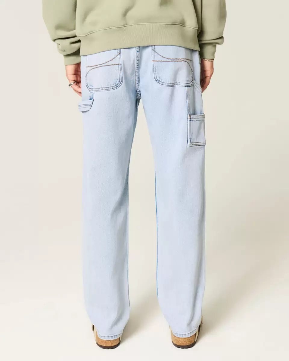 Bekväma jeans i lätt tvätt, designade med lösa ben, vänster målarögla och extra fickor. Importerad.
