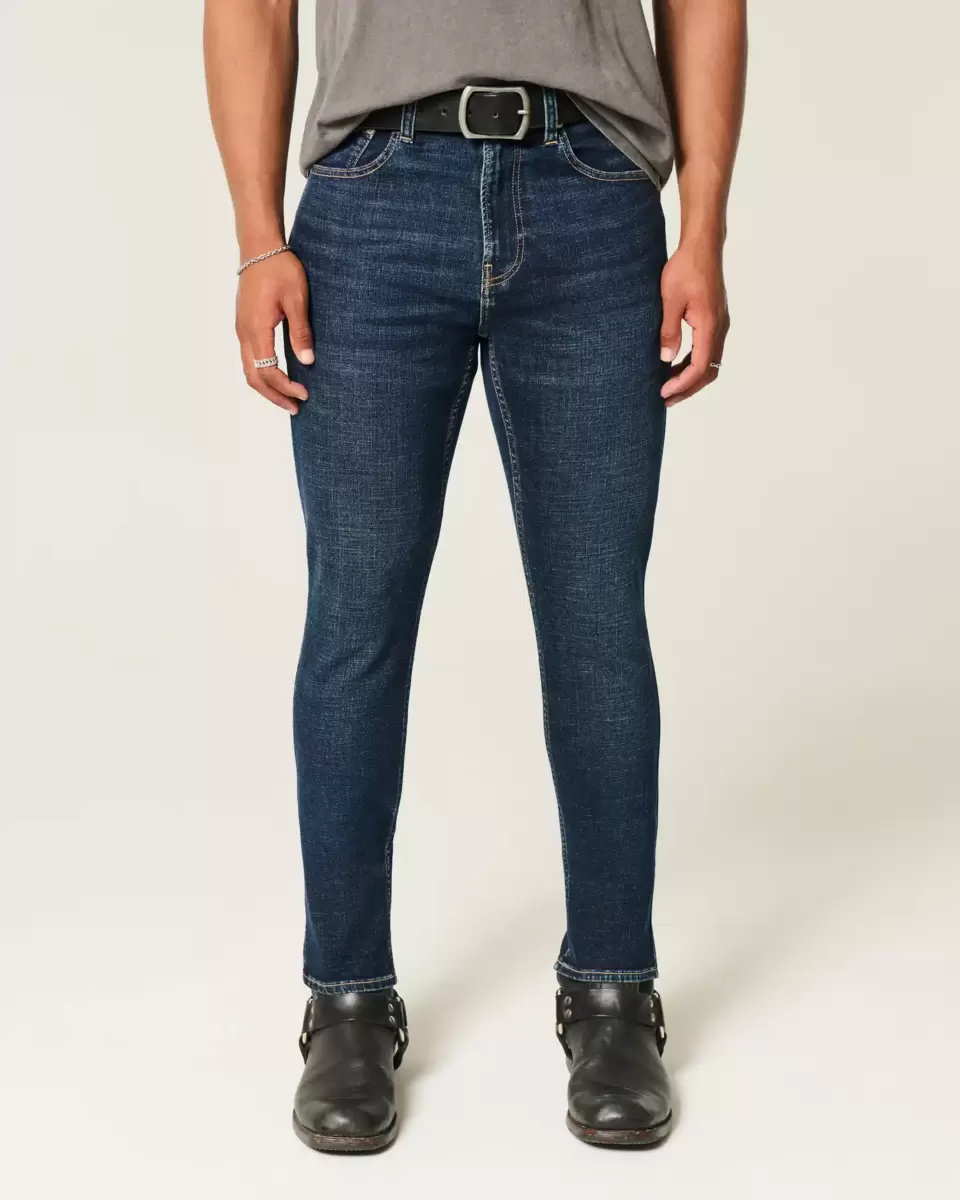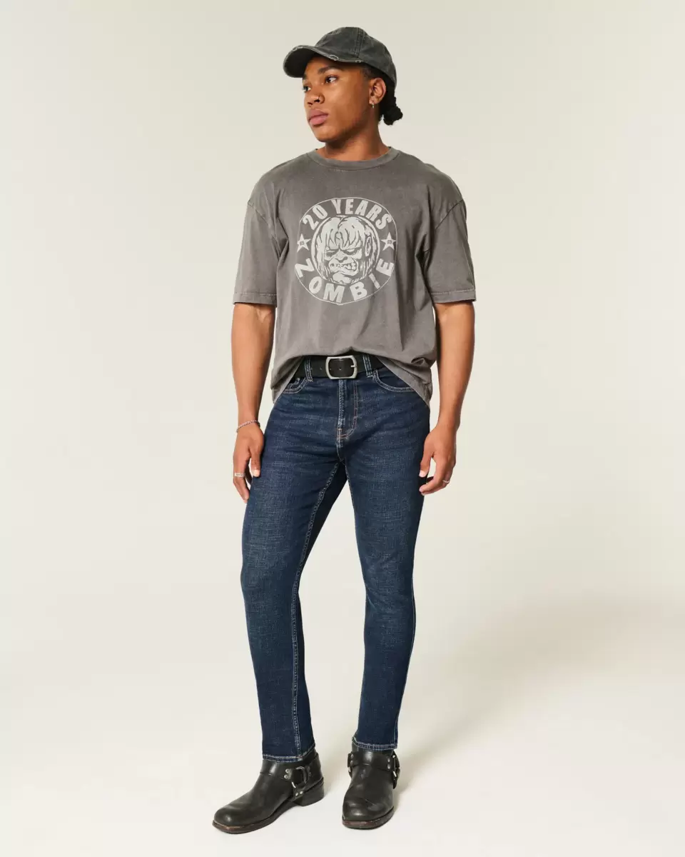 Mörka tvättade jeans designade i en smal passform med mer utrymme genom låret. Blekning och morrhår. Importerad.