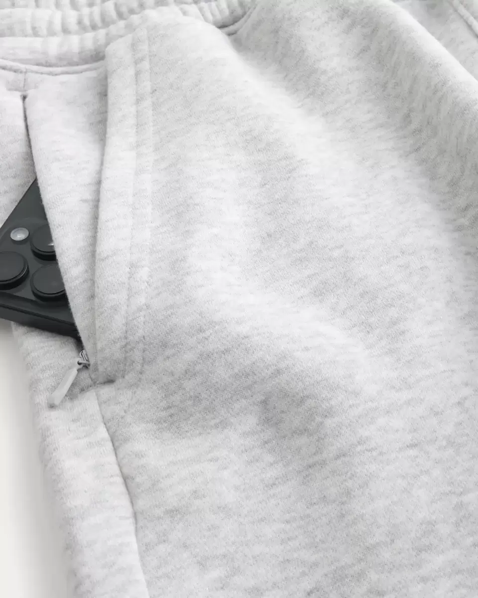 Supermjuka fleeceshorts designade med längd mitt på låret och dragsko i midjan. Fickor, höger ficka med dragkedja. Importerad.