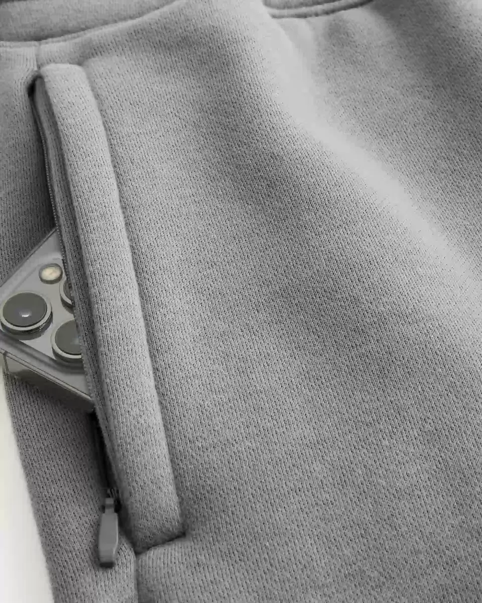 Supermjuka och bekväma fleeceshorts designade med lösa ben och mitt på låret. Broderad logotyp, dragsko i midjan, fickor, höger ficka med dragkedja. Importerad.