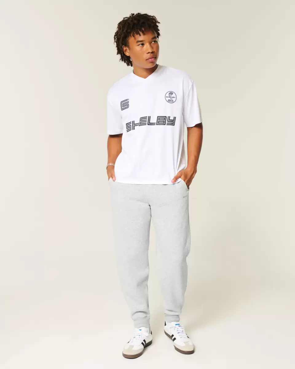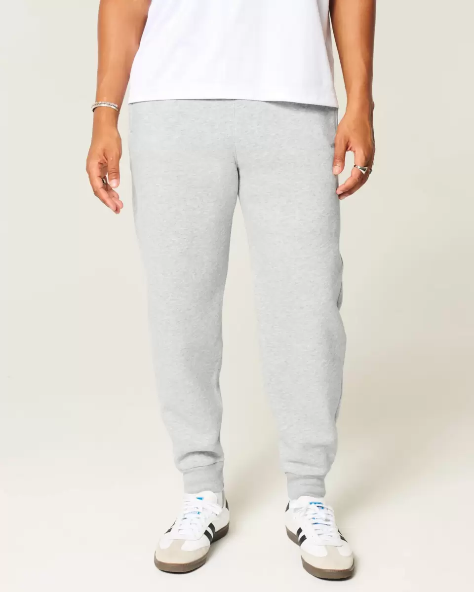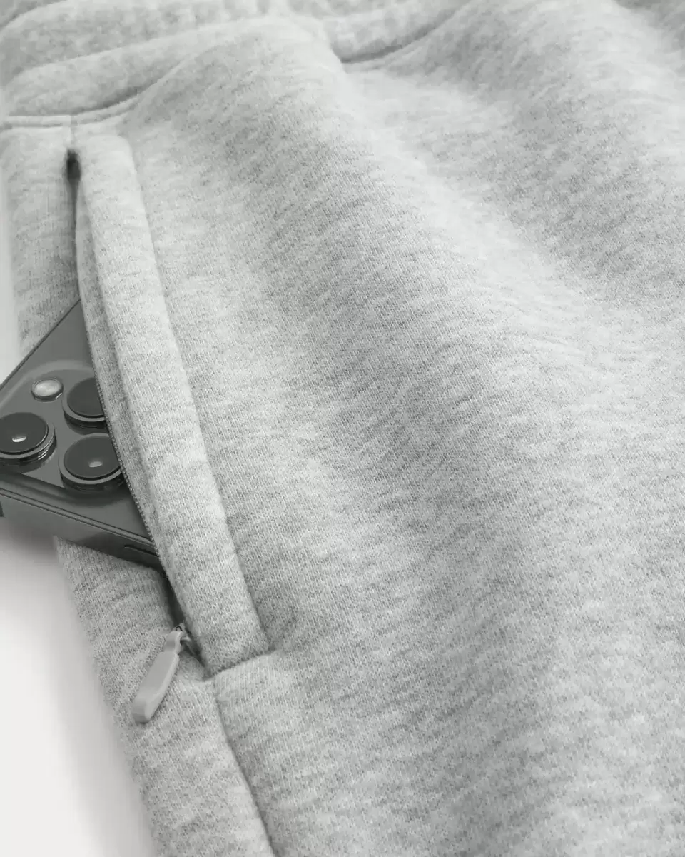 Supermjuka joggingbyxor i fleece med dragsko i midjan och ribbstickade muddar. Fickor, höger ficka med dragkedja, avslappnade ben. Importerad.