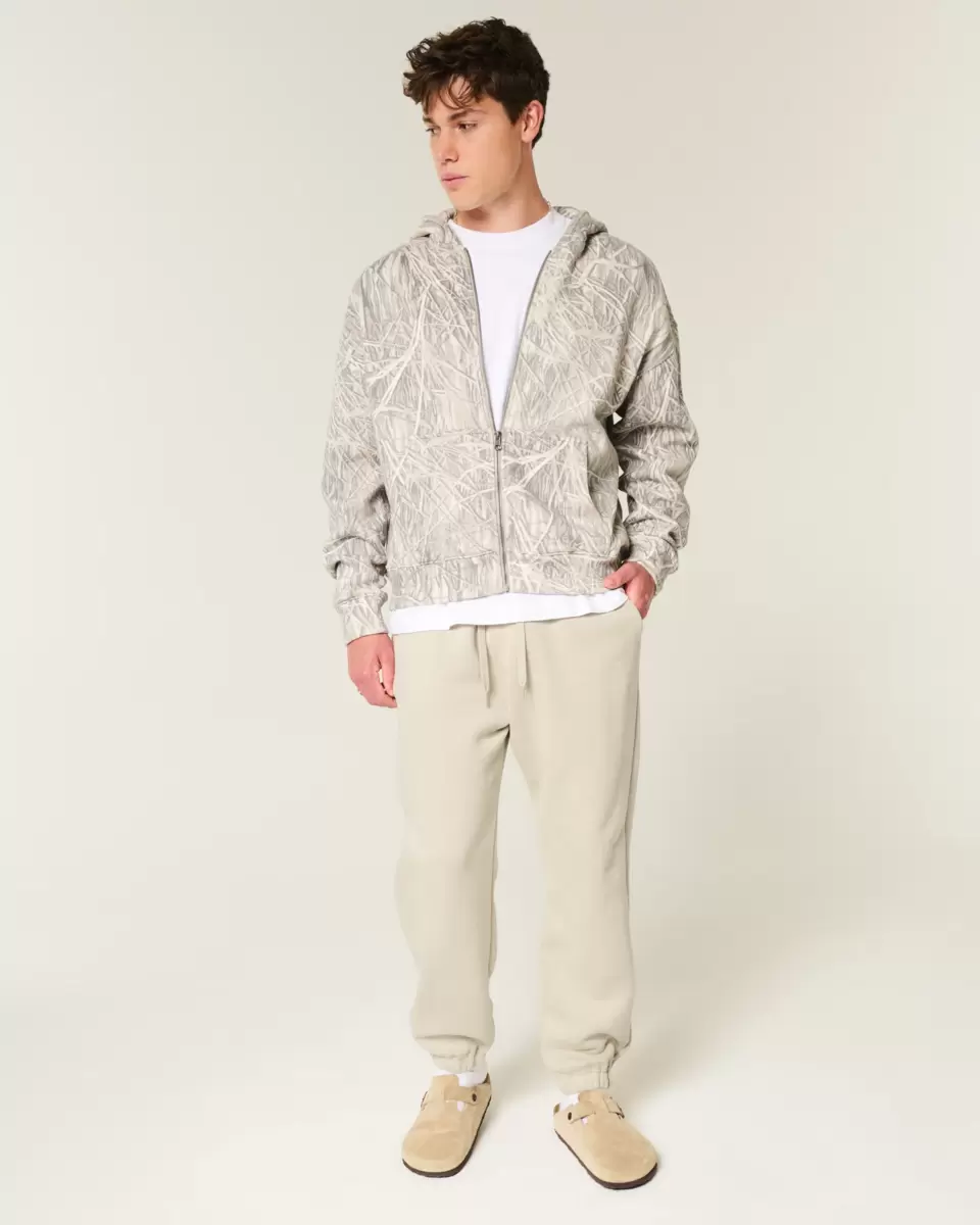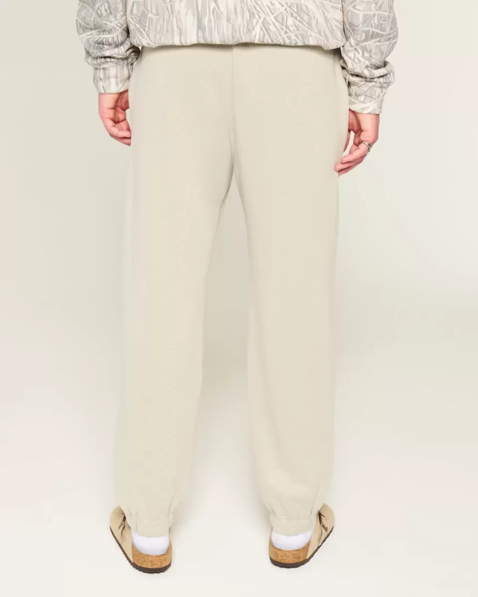 Supermjuka joggingbyxor i fleece designade med säckiga ben och knäppkant. Fickor, höger ficka med dragkedja, dragsko i midjan. Importerad.
