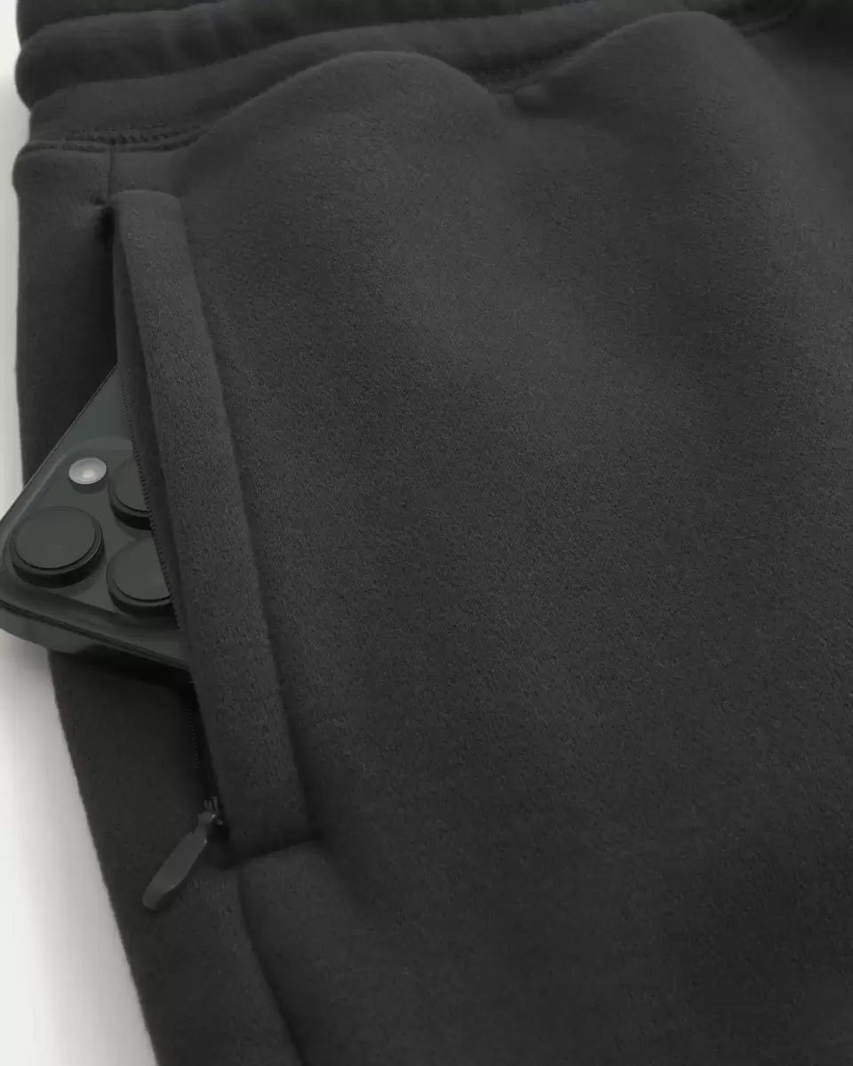 Supermjuka träningsbyxor designade med påsiga ben. Dragsko i midjan, fickor, höger ficka med dragkedja, broderad ormgrafik på bakfickan. Importerad.