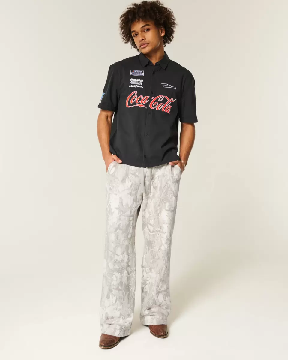 Supermjuka träningsbyxor i fleece designade med en bootcut-ben. Fickor, höger ficka med dragkedja, dragsko i midjan, camomönster överallt.