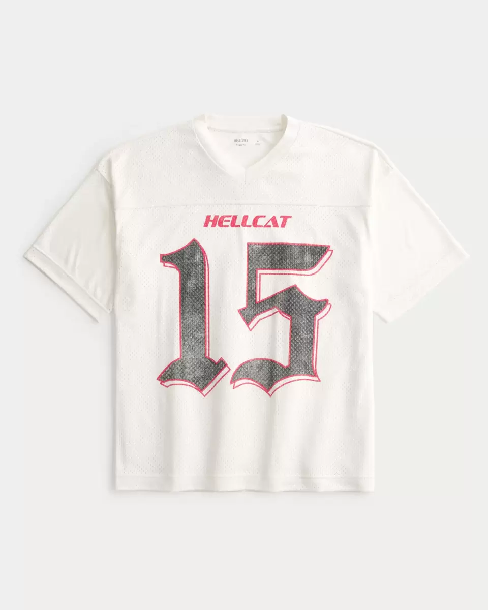 En klassisk fotbollströja i mjukt meshtyg med officiell licensierad Dodge Hellcat-grafik fram och bak. V-ringning, korta ärmar. Baggy Fit. Importerad.