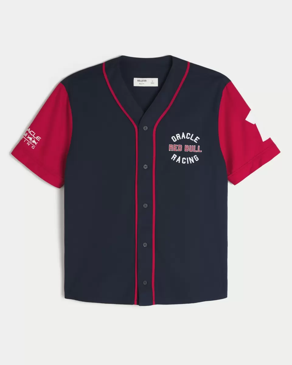 Denna klassiska basebolltröja har officiellt licensierad Oracle Red Bull Racing grafisk broderi på vänster bröst och höger ärm. Knäppning, v-ringning, korta ärmar. Boxig passform. Importerad.