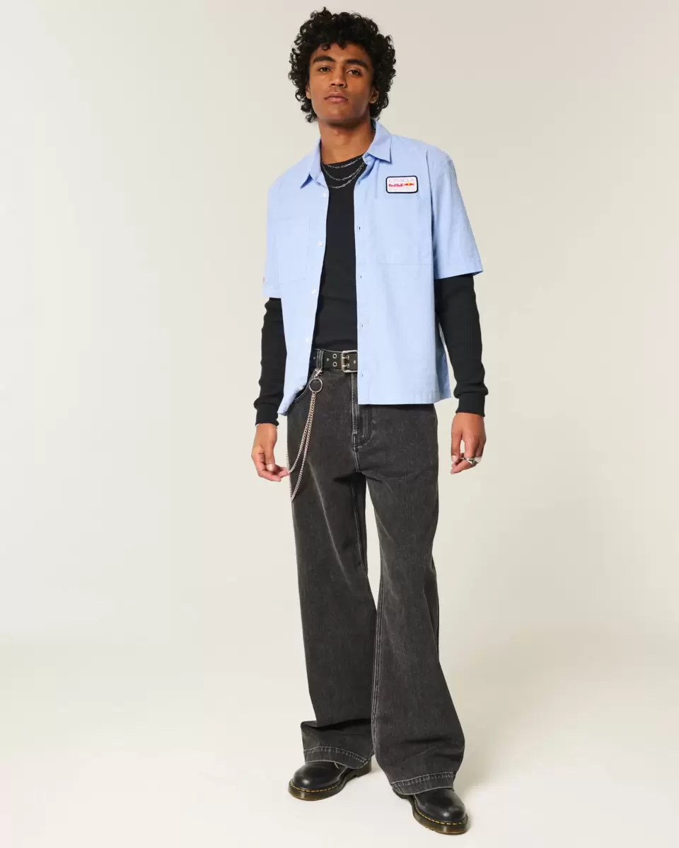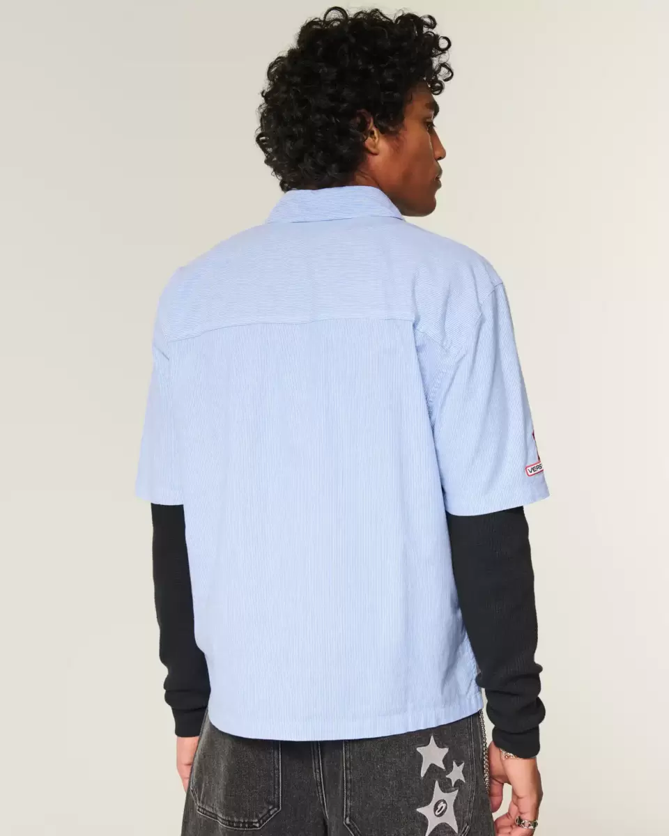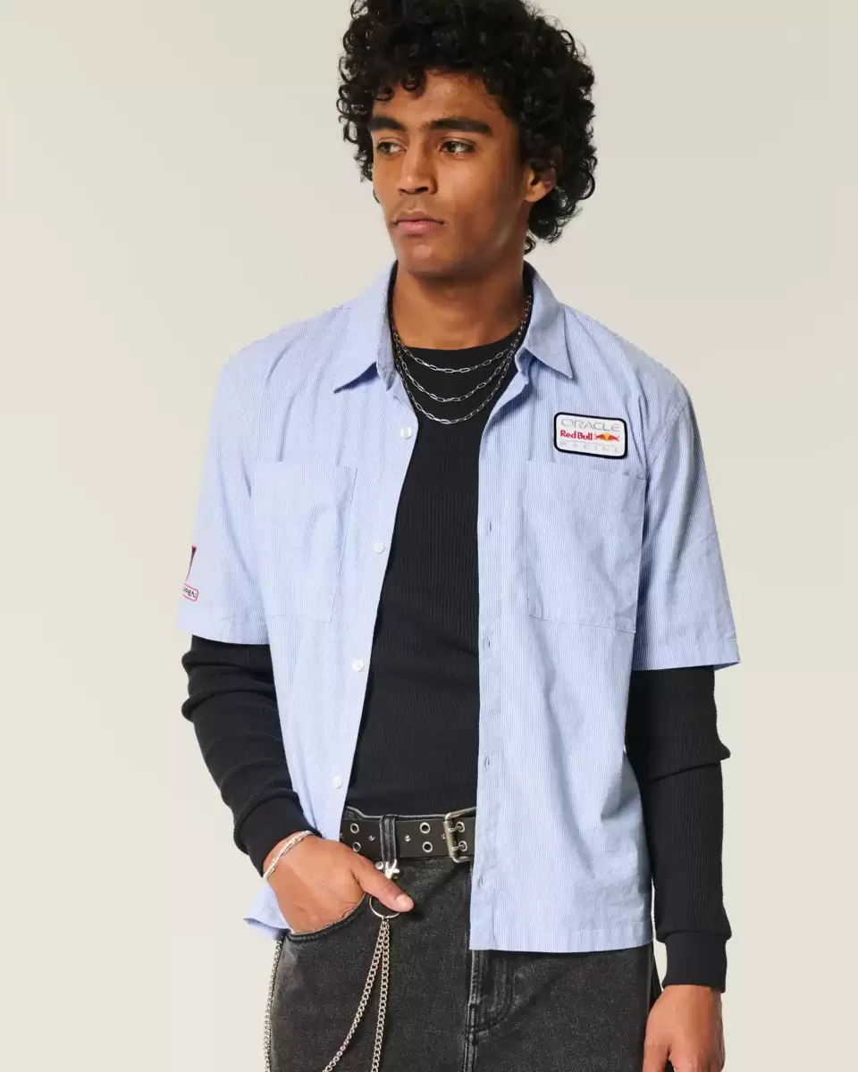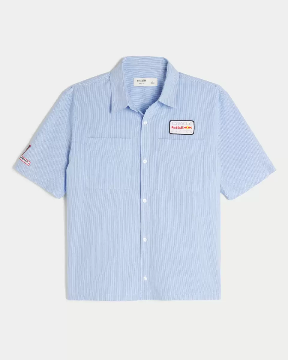 En klassisk skjorta i arbetskläderstil med korta ärmar och officiellt licensierad Oracle Red Bull Racing och Max Verstappen grafisk broderi på vänster bröst och höger ärm. Hel knappstängning, bröstfickor, krage. Boxig passform. Importerad.