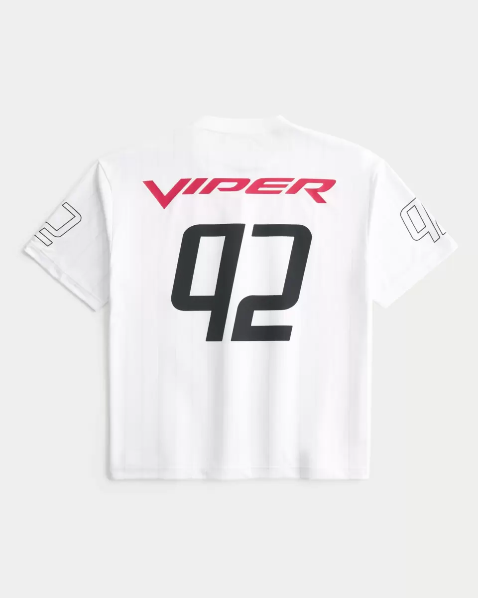 Denna klassiska, supermjuka fotbollströjan har officiell licensierad Dodge Viper-grafik fram och bak. Korta ärmar, v-ringning. Boxig passform. Importerad.
