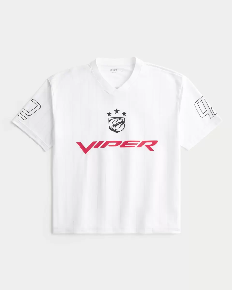 Denna klassiska, supermjuka fotbollströja har officiell licensierad Dodge Viper-grafik fram och bak. Korta ärmar, v-ringning. Boxig passform.