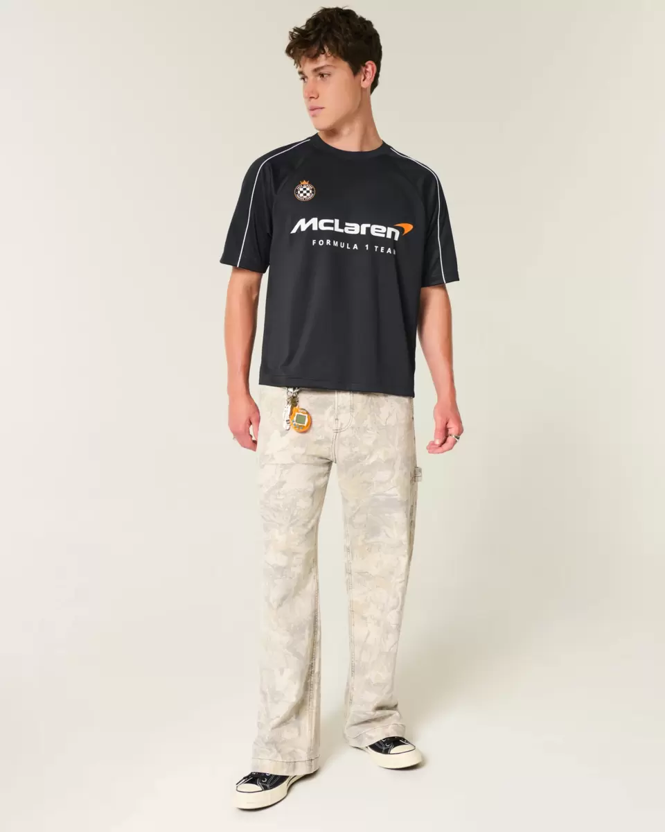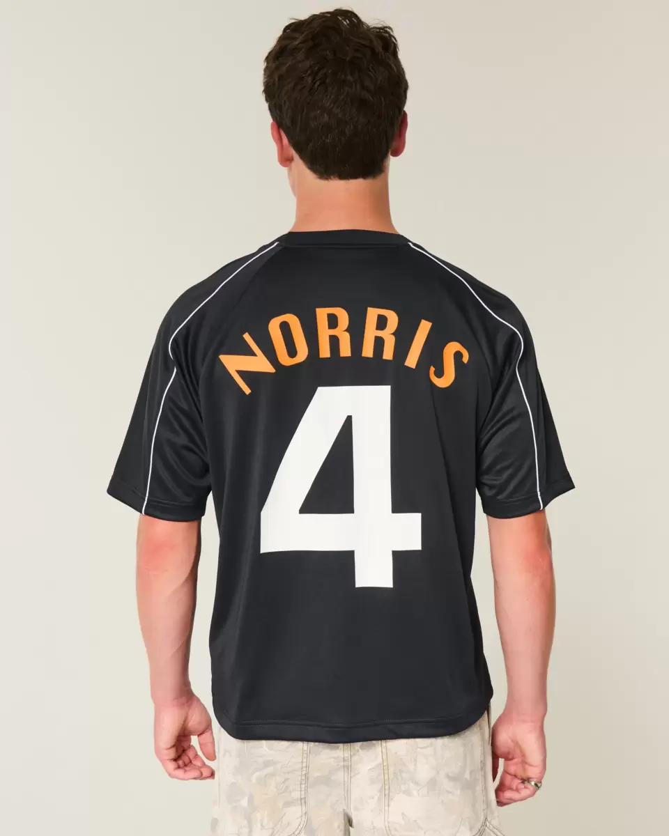 Denna klassiska, supermjuka fotbollströja har officiell licensierad McLaren Formula 1 Team-grafik framtill och Lando Norris-grafik bak. Korta ärmar, v-ringning. Boxig passform. Importerad.