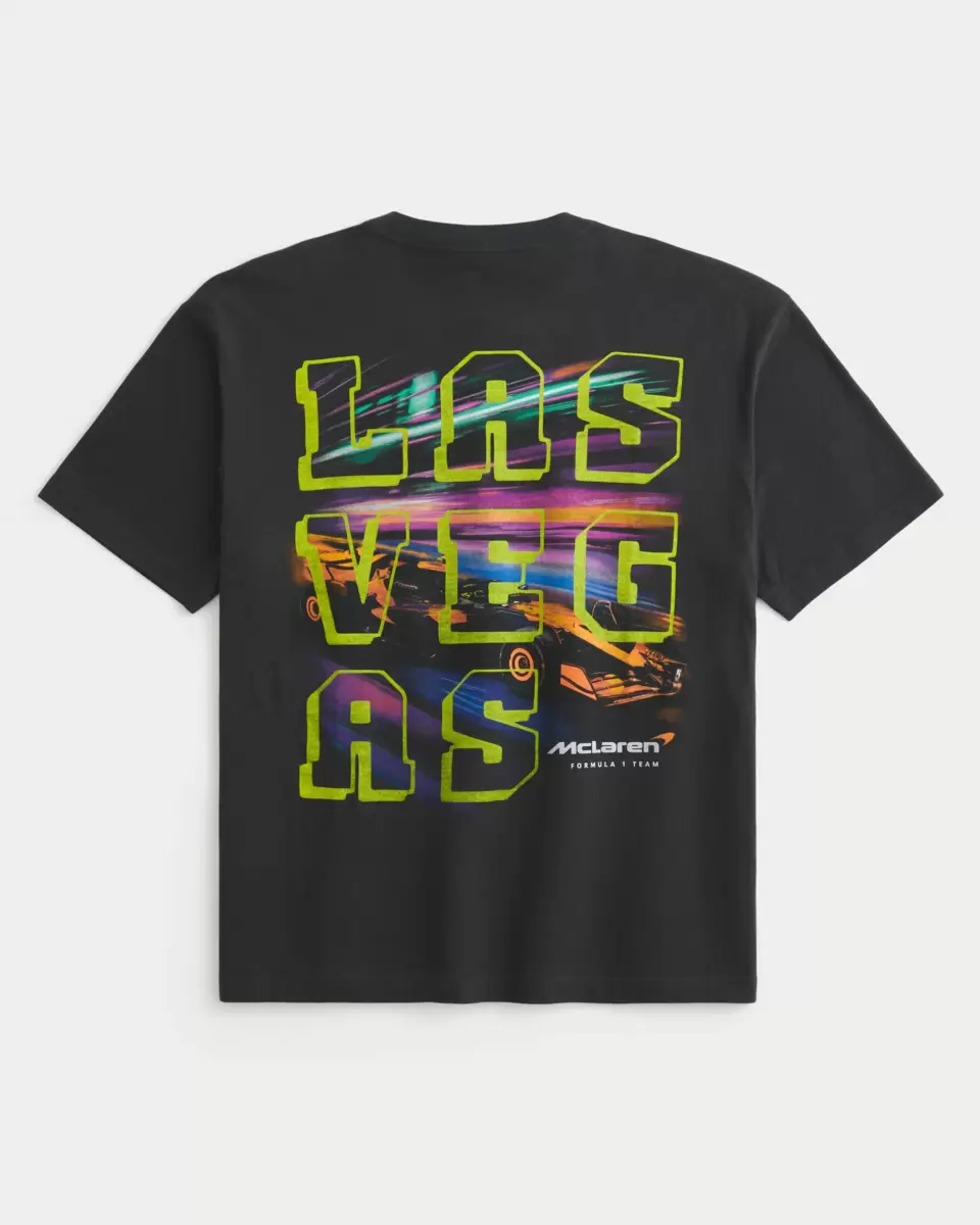 En supermjuk t-shirt i 100 % bomull med officiell licensierad McLaren Formula 1 Team-grafik fram och bak. Las Vegas tryckt grafik på baksidan. Rund halsringning, korta ärmar. Boxig passform. Importerad.