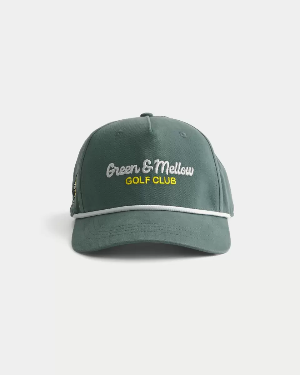 En klassisk hatt med grönt & Mellow Golf Club grafiskt broderi fram och höger sida. Justerbar. Importerad.
