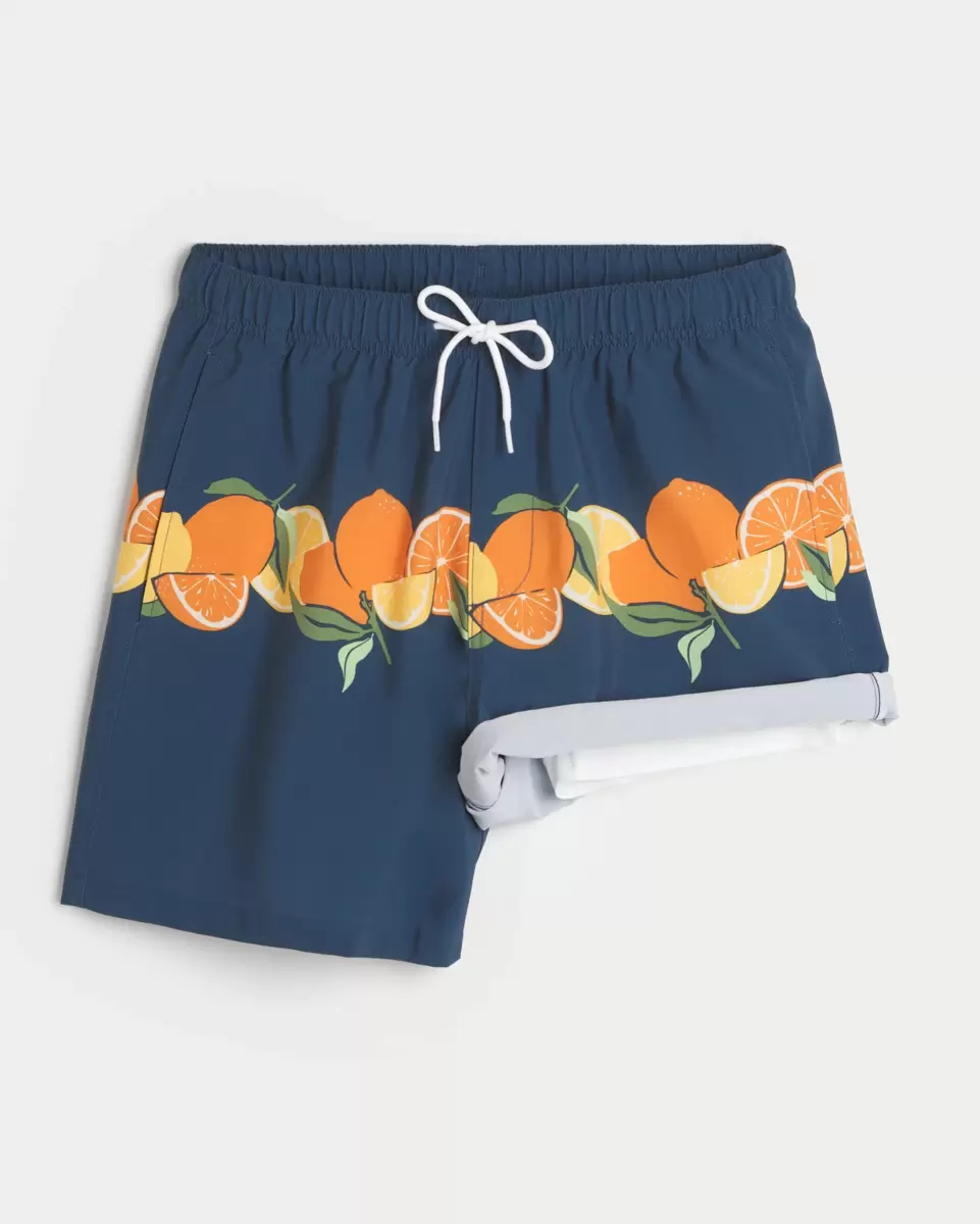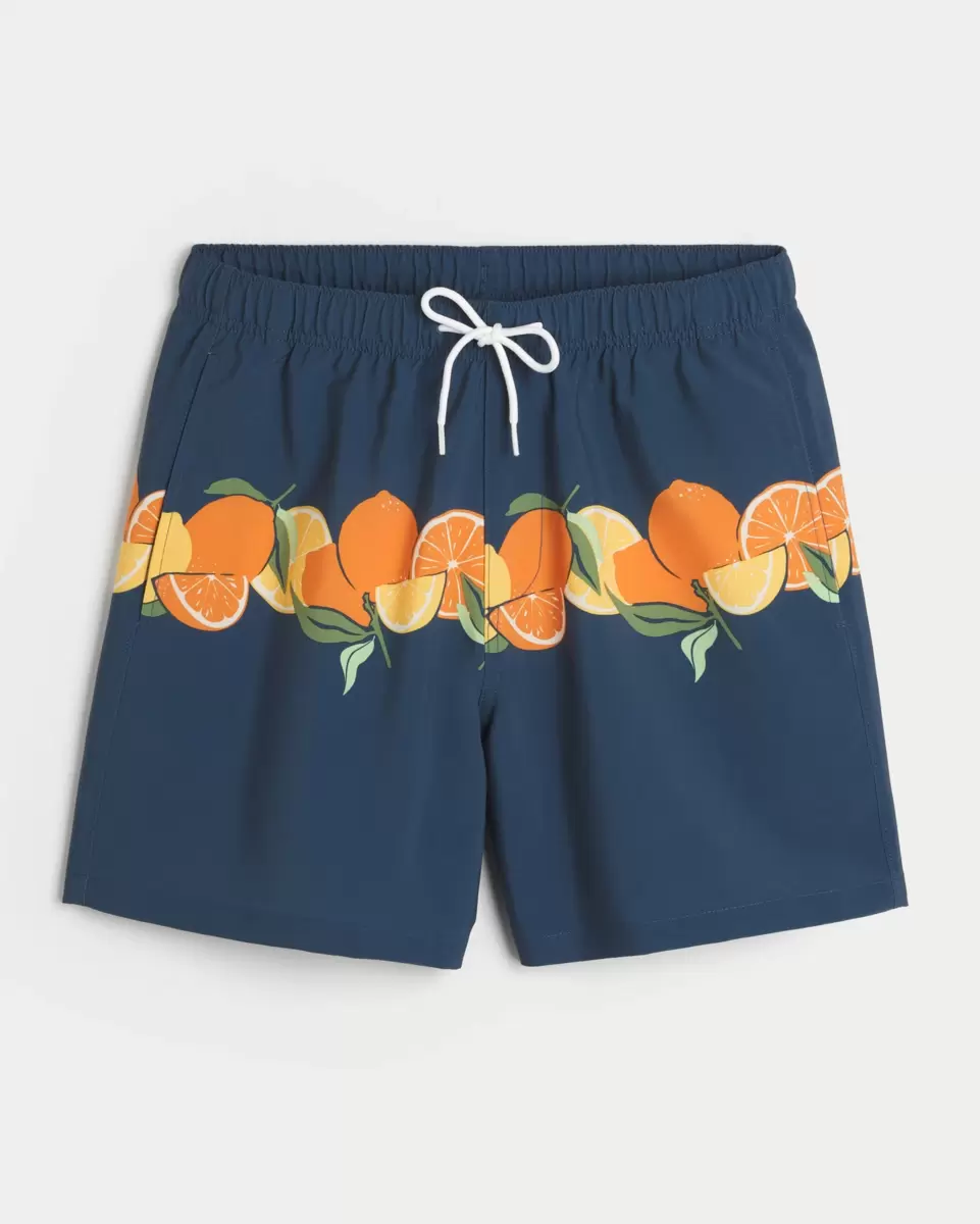 Kortare badbyxor som träffar mitten av låret. Med bekvämt 4-vägs stretchigt simtyg och en 6″ innersöm. Framfickor, meshfoder. Importerad.