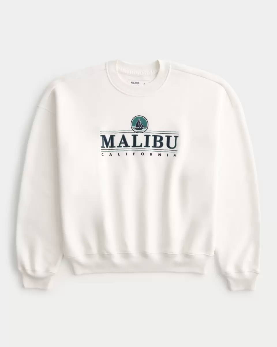 Denna supermjuka fleecetröja har Malibu California grafiska broderier och applikationer. Rund halsringning, långa ärmar. Baggy Cinch Fit. Importerad.