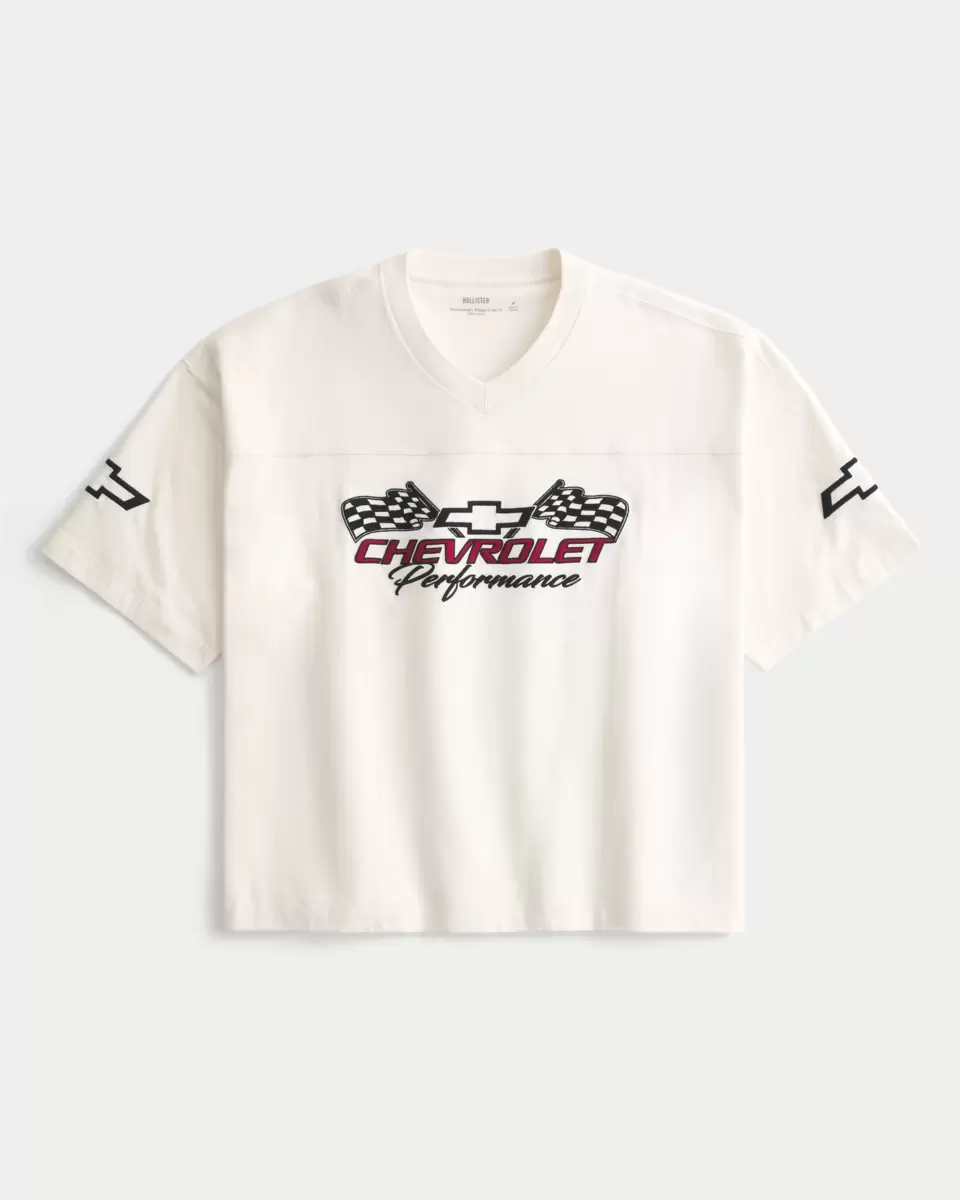 En supermjuk fotbollströja i kraftig bomull, med officiellt licensierad Chevrolet grafisk broderi. V-ringning, korta ärmar. Baggy Crop Fit.