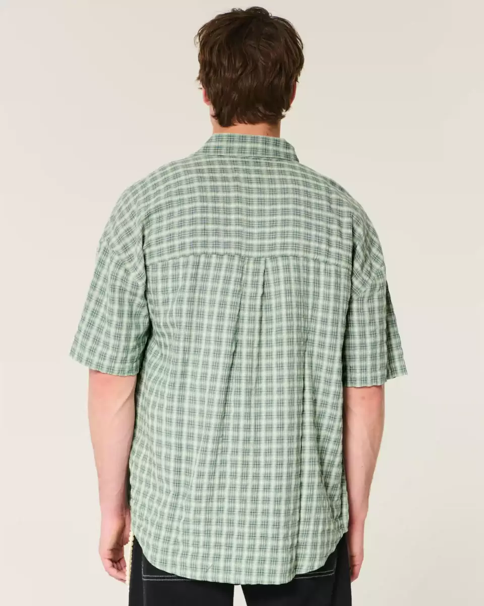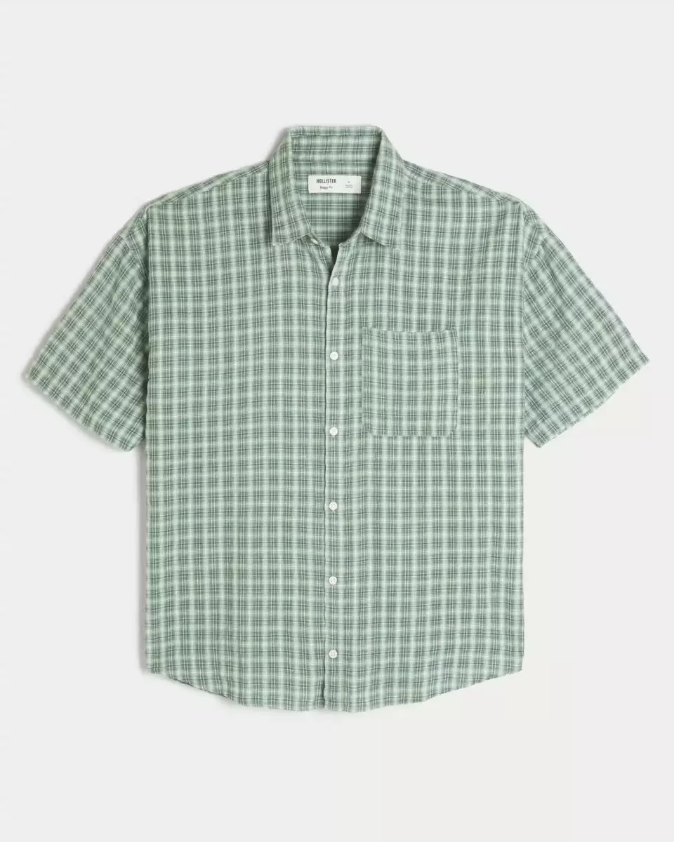 Denna klassiska, bekväma kortärmade skjorta har ett rutigt mönster och vänster bröstficka. Hel knappstängning, krage. Baggy Fit. Importerad.