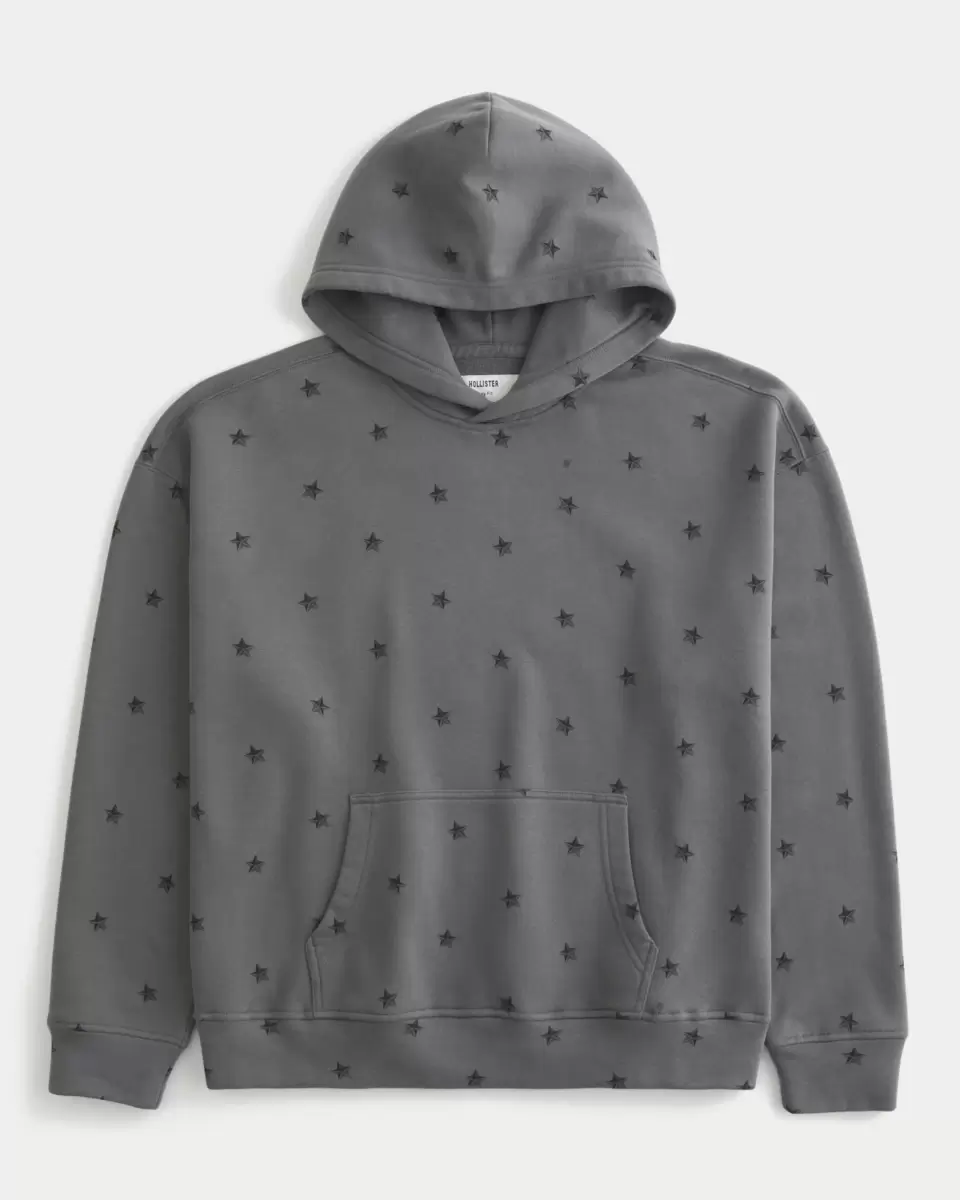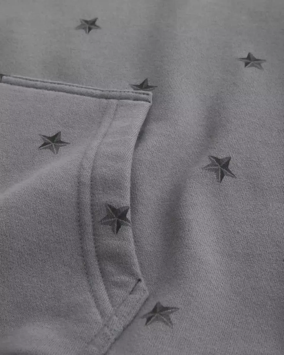 En supermjuk luvtröja i fleece med ett heltäckande stjärnmönster. Huva, ficka framtill, långa ärmar. Boxig passform. Importerad.