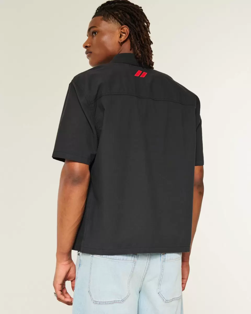 En skjorta i klassisk arbetsklädesstil med korta ärmar och hel knappstängning. Officiellt licensierad Dodge Hellcat grafiskt broderi fram och bak, krage, korta ärmar. Boxig passform. Importerad.