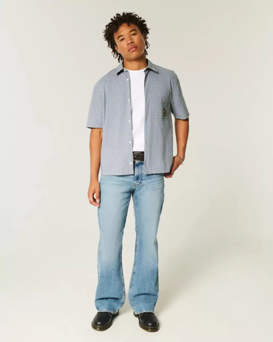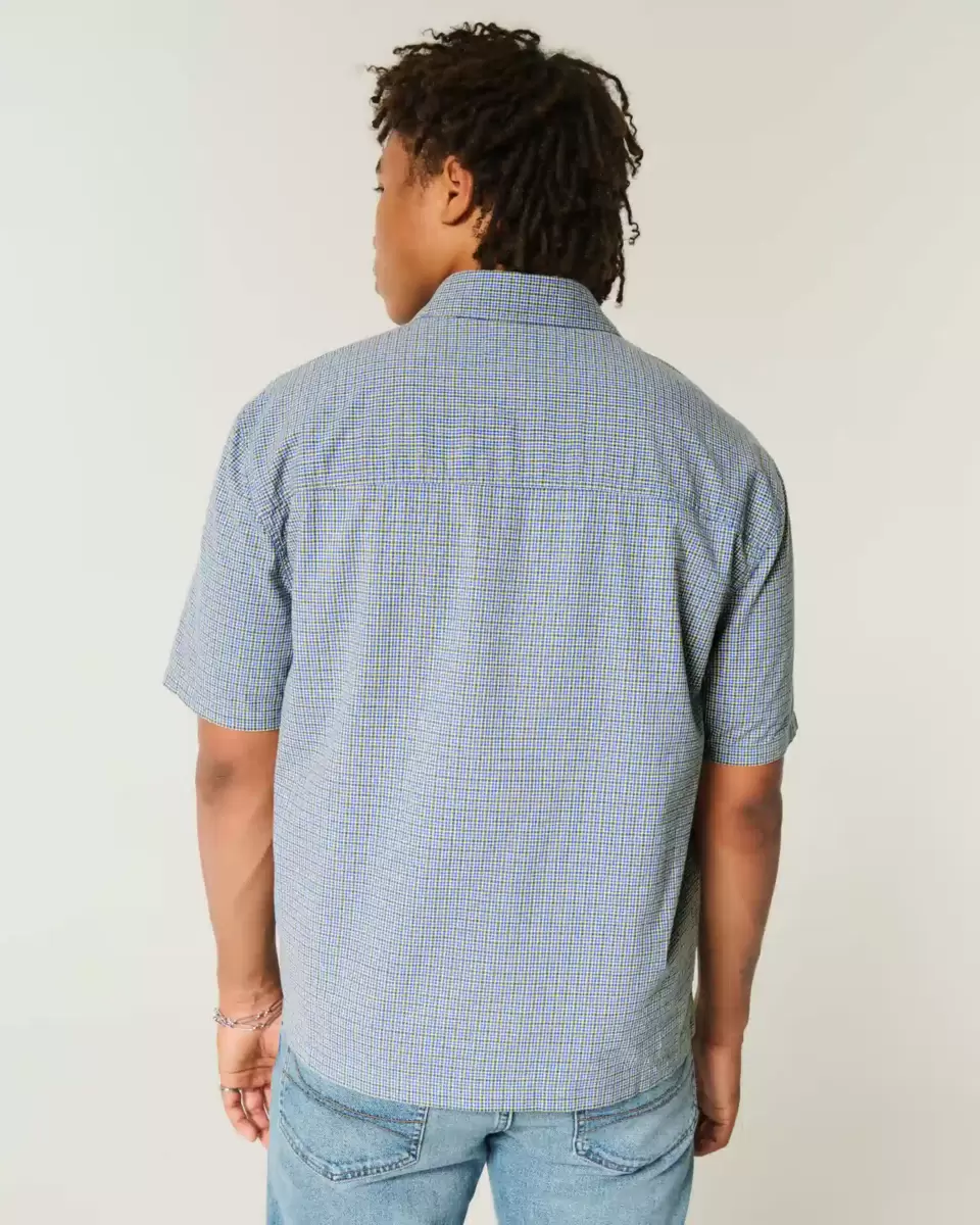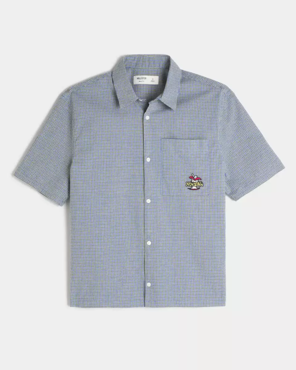 En klassisk skjorta i mjukt poplintyg med New York-äpplebroderier på vänster bröstficka. Knäppning, krage, korta ärmar, rutmönster. Boxig passform. Importerad.