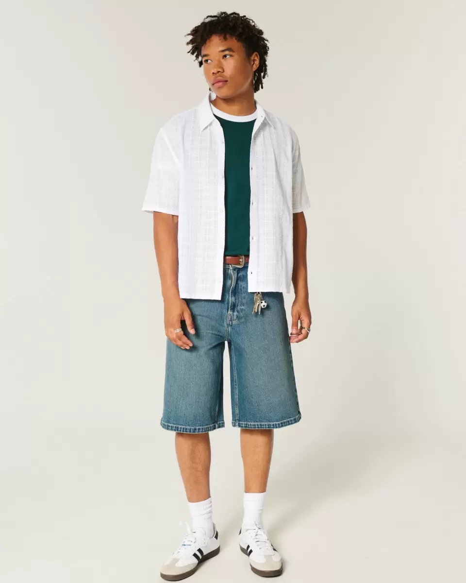 En klassisk, bekväm skjorta med korta ärmar och ett strukturmönster. Krage, hel knappstängning. Boxig passform. Importerad.