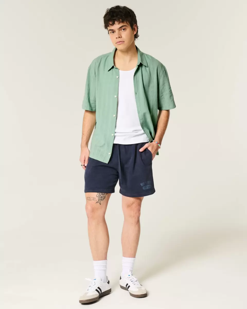 En klassisk, bekväm skjorta med korta ärmar och ett strukturmönster. Krage, hel knappstängning. Boxig passform. Importerad.
