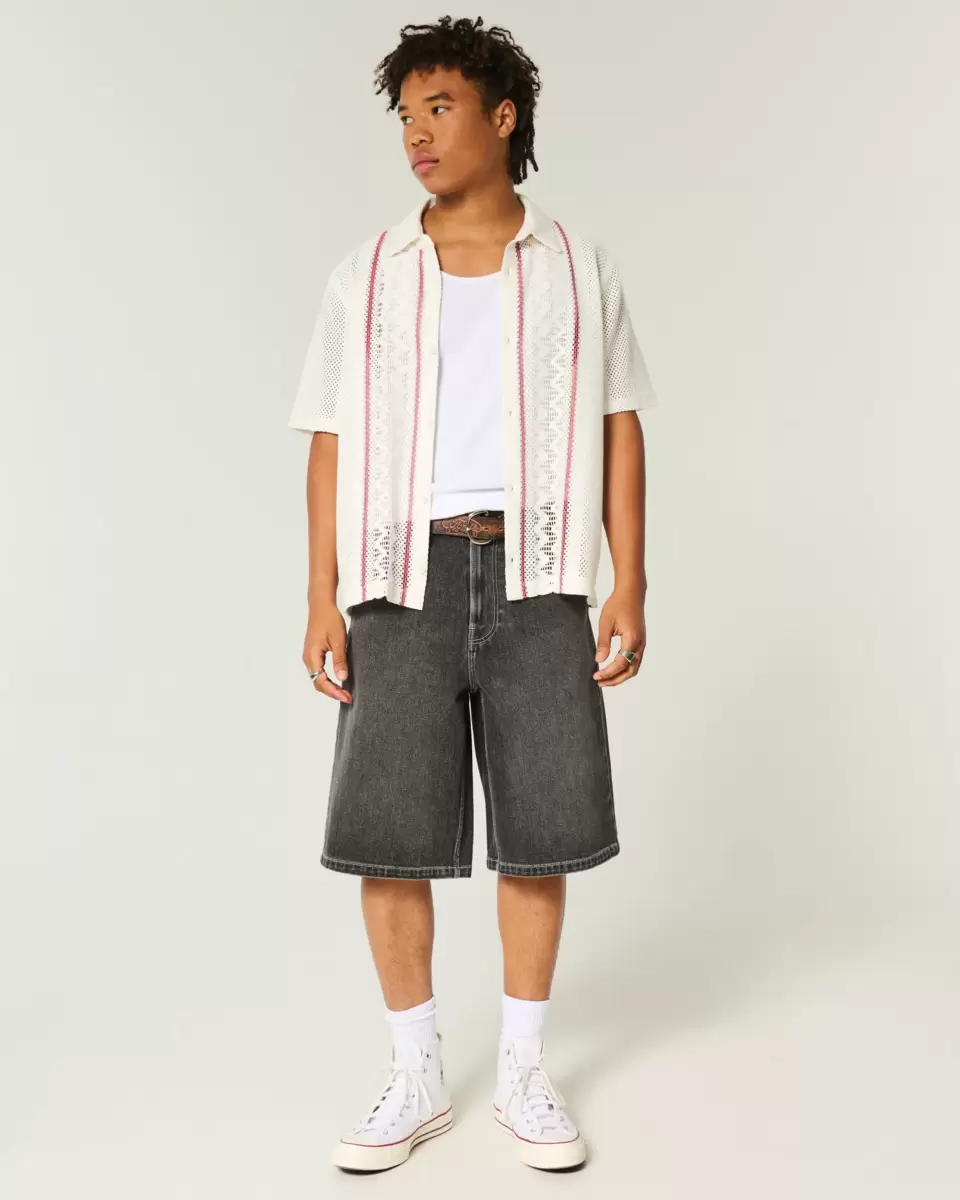 Denna klassiska kortärmade skjortan är gjord av mjukt virkat tyg. Knäppning, krage, korta ärmar. Boxig passform. Importerad.