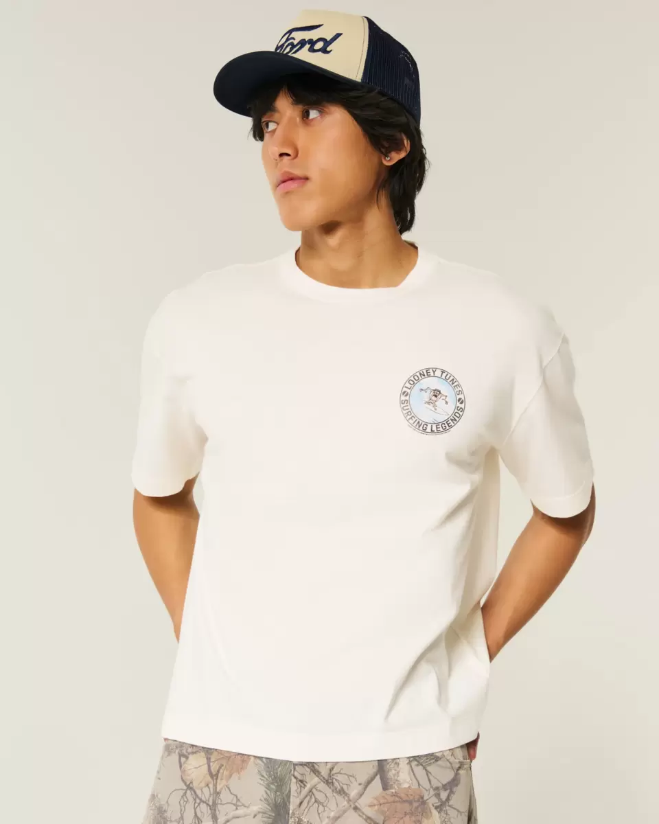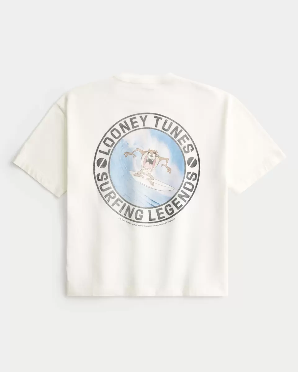 En supermjuk t-shirt med officiellt licensierad Looney Tunes Taz surfing-grafik på vänster bröst och rygg. Rund halsringning, korta ärmar. Boxy Crop Fit. Importerad.