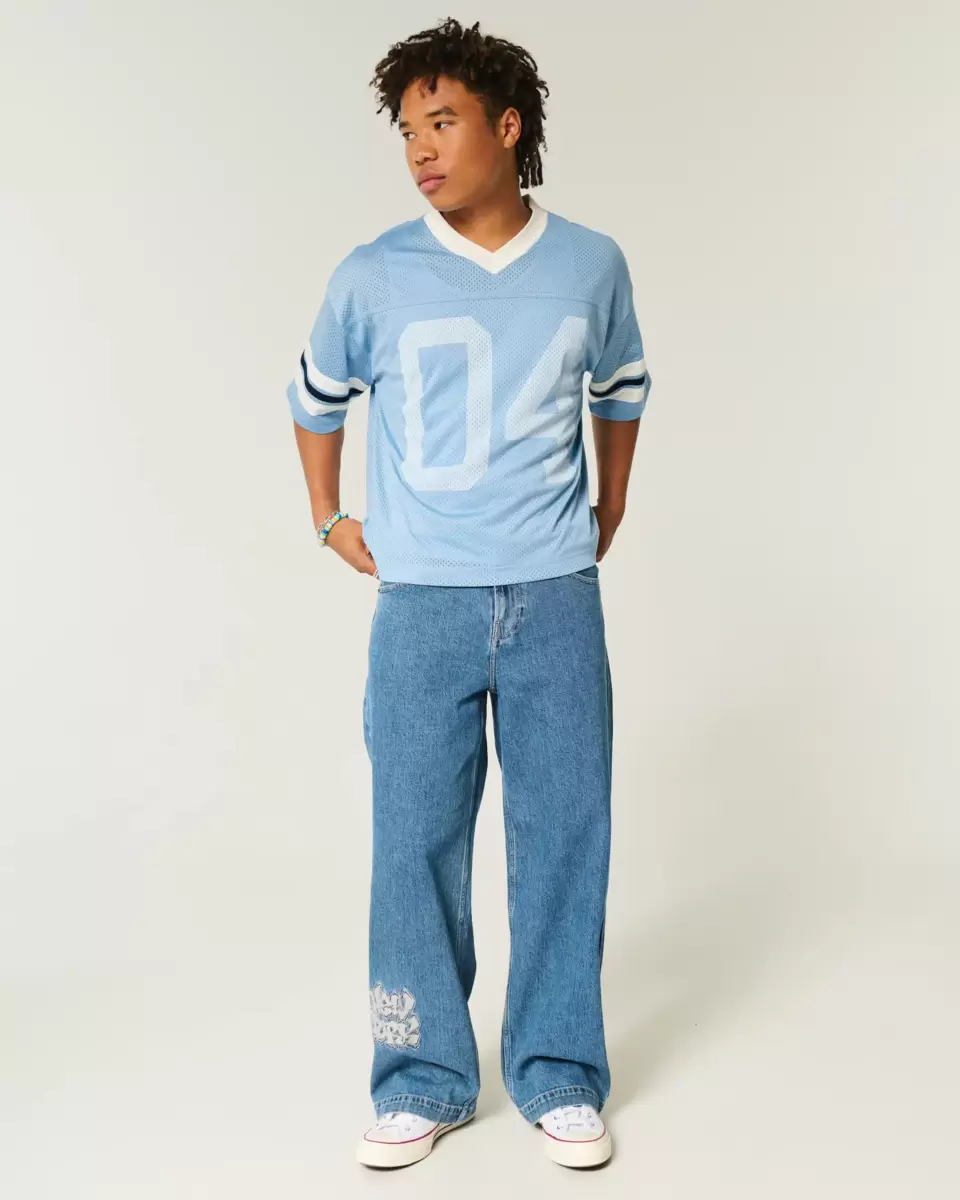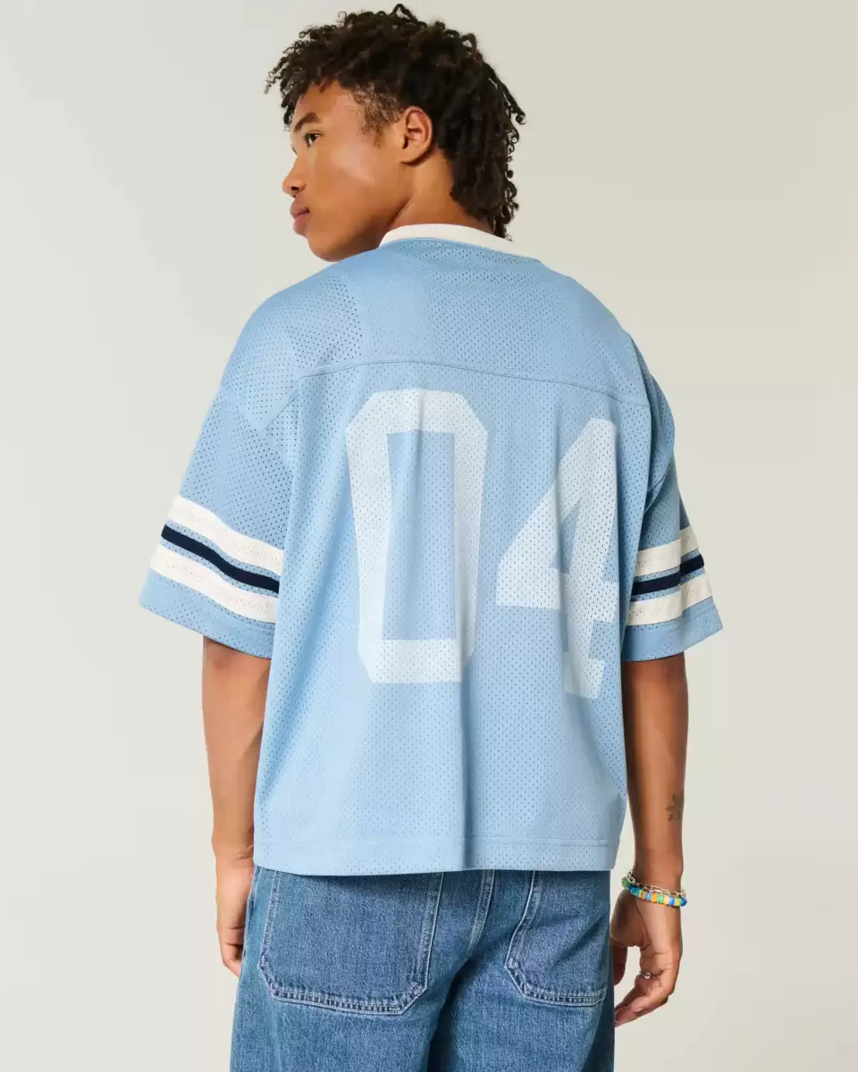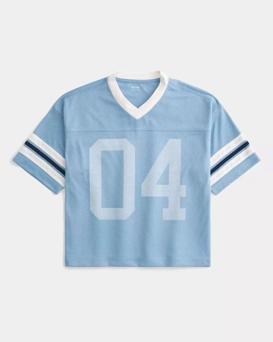 En klassisk fotbollströja i meshtyg, med grafik nummer 04 fram och bak, v-ringning och korta ärmar. Boxy Crop Fit. Importerad.