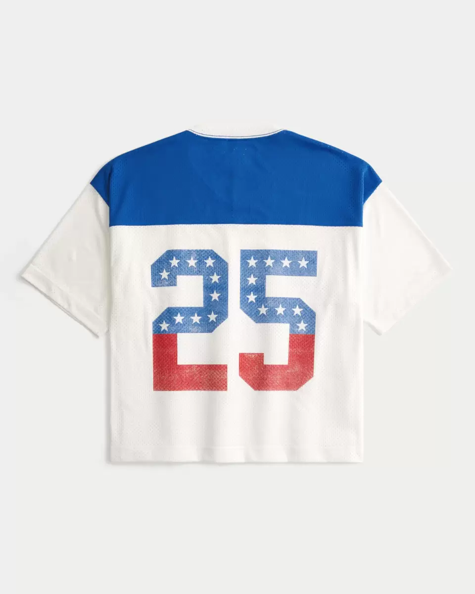 En klassisk fotbollströja i meshtyg, med grafik nummer 25 fram och bak, v-ringning och korta ärmar. Boxy Crop Fit. Importerad.