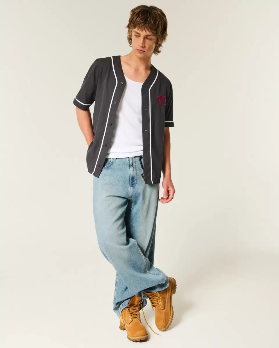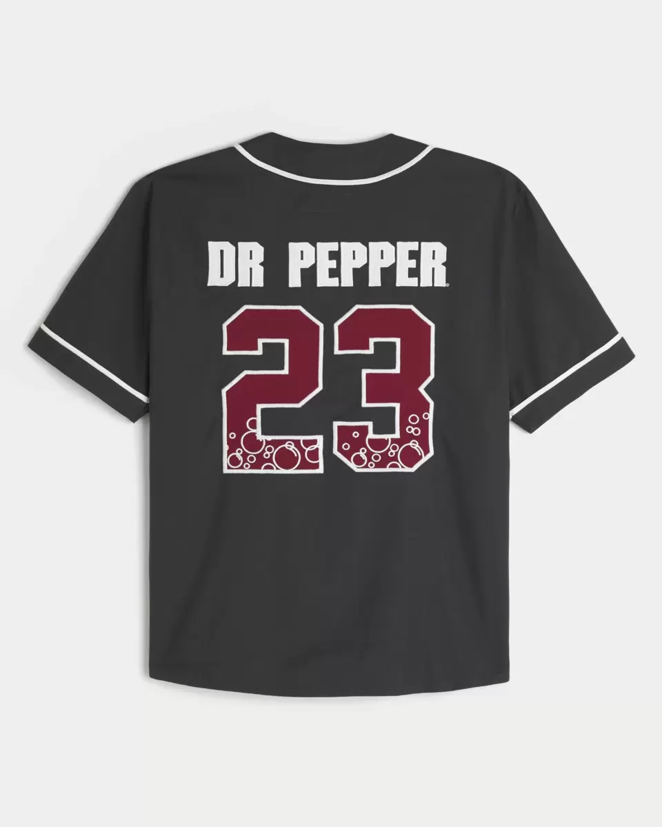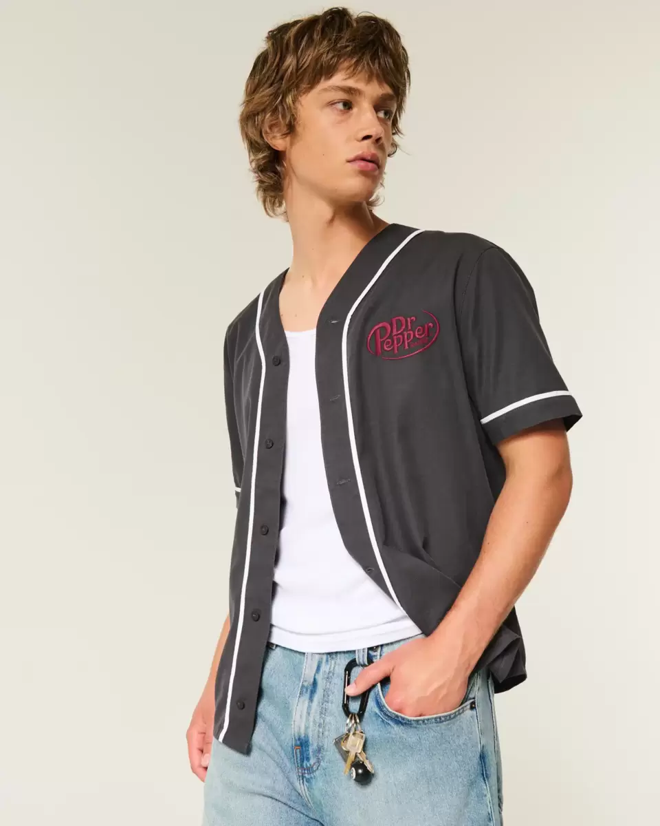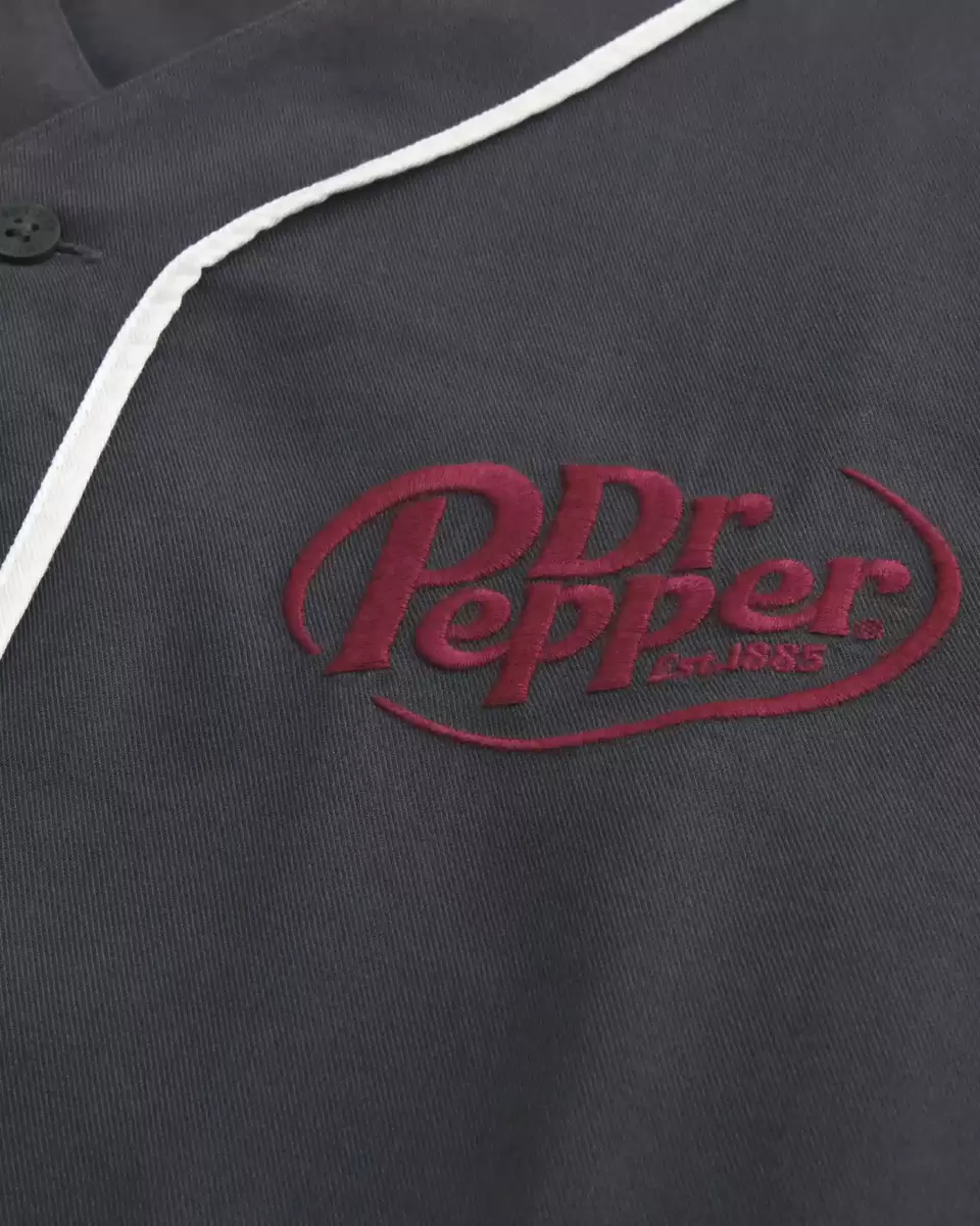 Denna klassiska basebolltröja har officiellt licensierad Dr Pepper grafisk broderi på vänster bröst och rygg. Helknäppning, v-ringning, korta ärmar. Boxig passform.