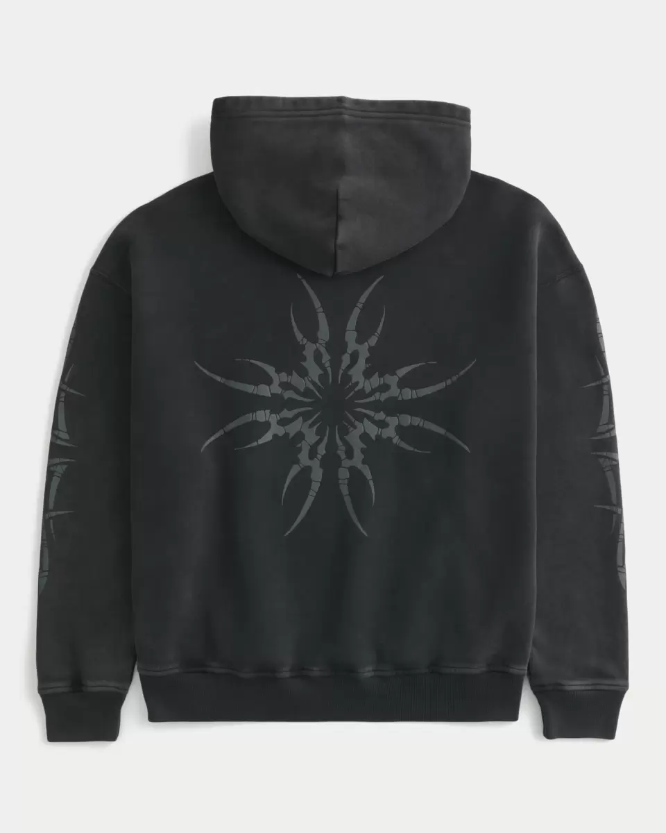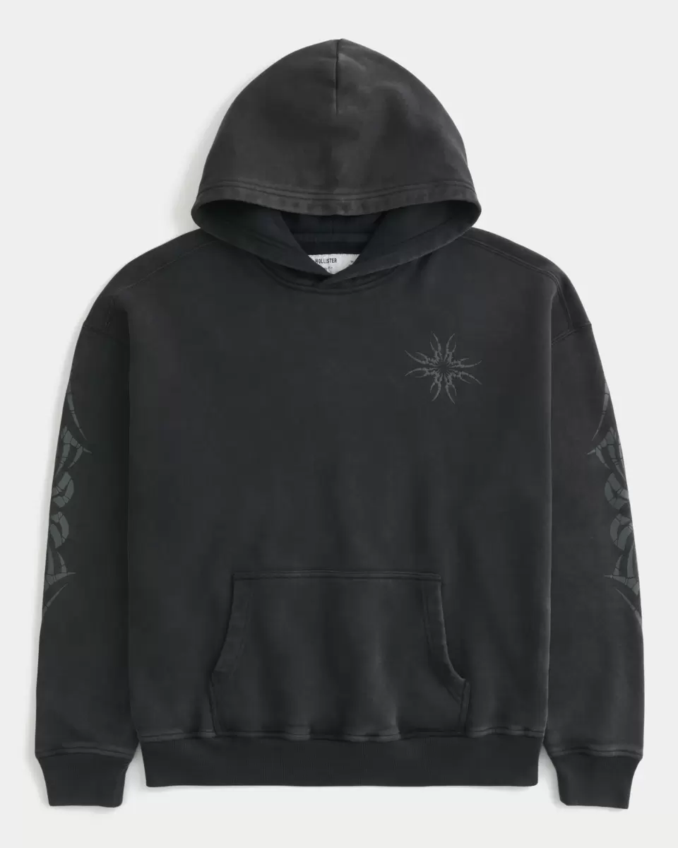 En supermjuk luvtröja i fleece med tryckt grafik på vänster bröst, ärmar och bak. Främre ficka, långa ärmar, huva. Boxig passform. Importerad.