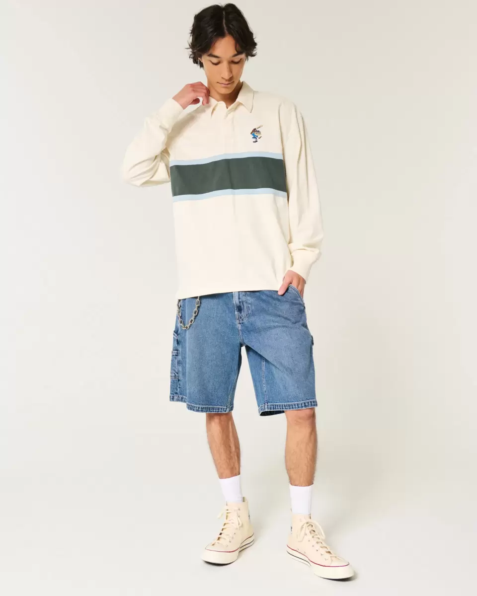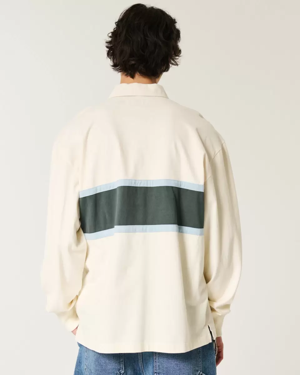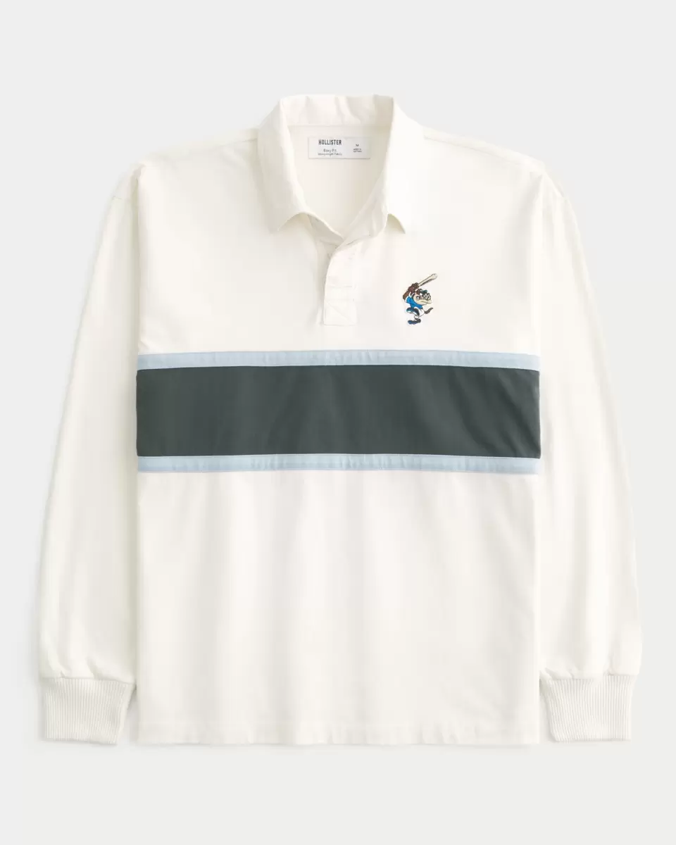En långärmad rugbypolo i kraftigt 100 % bomullstyg med ränder och officiell Looney Tunes-licensierad Tasmanian Devil grafisk broderi på vänster bröst. Krage, knappslå. Boxig passform. Importerad.