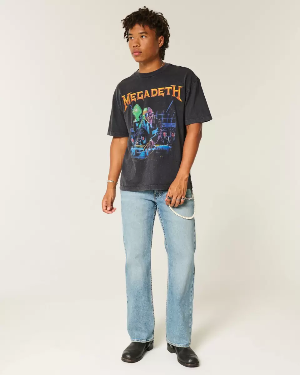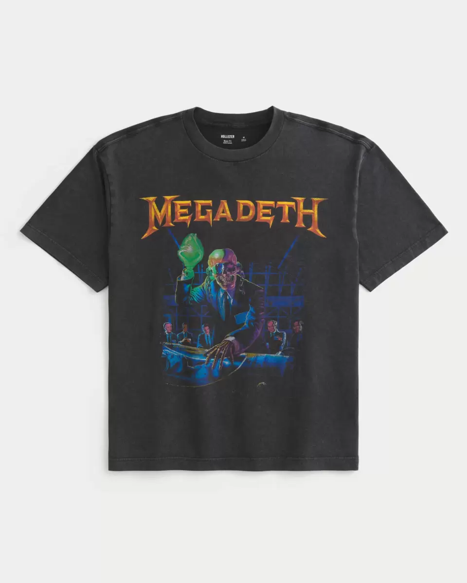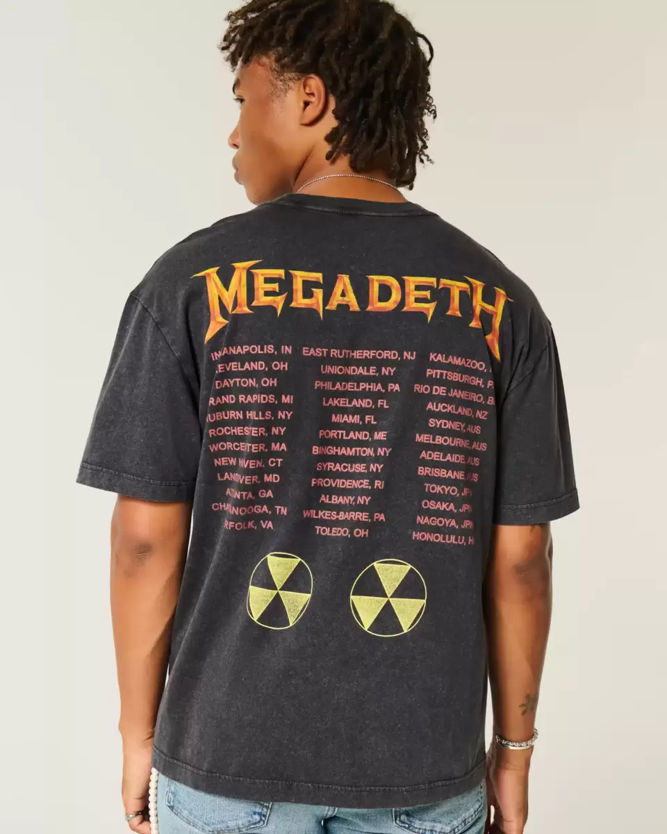 Denna supermjuka t-shirt i 100 % bomull har officiell licensierad Megadeth-turtrycksgrafik fram och bak. Rund halsringning, korta ärmar. Boxig passform. Importerad.