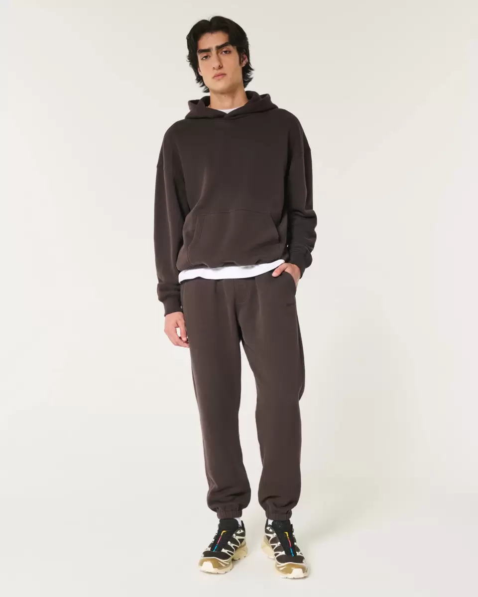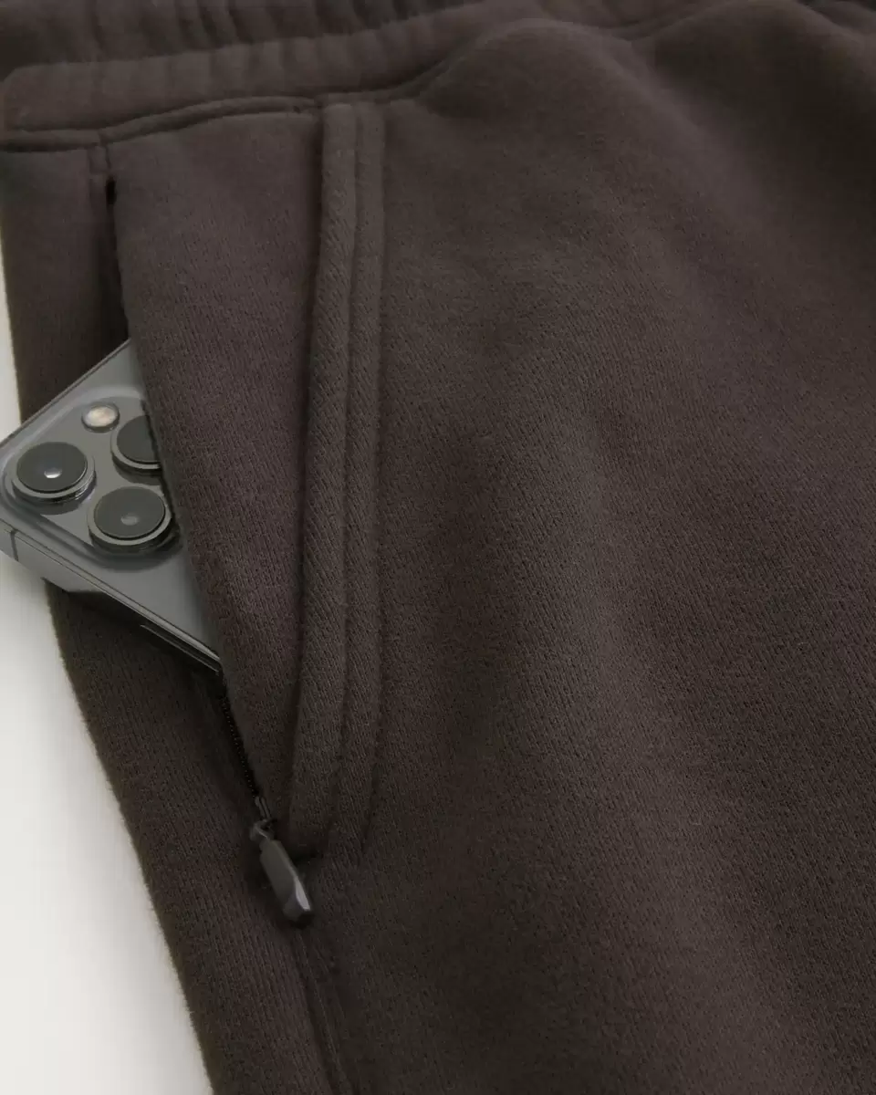 Supermjuka joggingbyxor i fleece designade med avslappnade ben, dragsko i midjan och bandade fållar. Broderad logotypdetalj på vänster ben, fickor, höger blixtlåsficka. Importerad.
