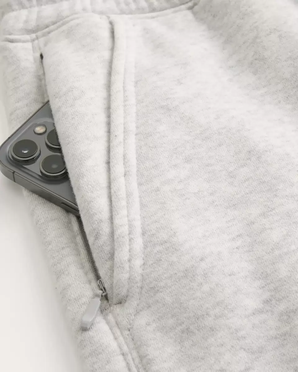 Supermjuka joggingbyxor i fleece designade med avslappnade ben, dragsko i midjan och bandade fållar. Broderad logotypdetalj på vänster ben, fickor, höger blixtlåsficka. Importerad.