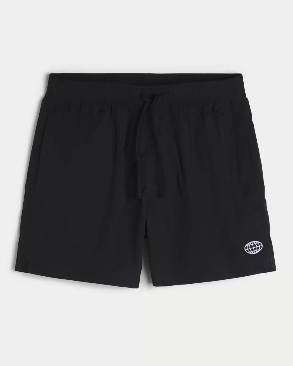 Klassiska fotbollsshorts som träffar mitten av låret med en broderad ikon på vänster ben. Dragsko i midjan, fickor. Importerad.