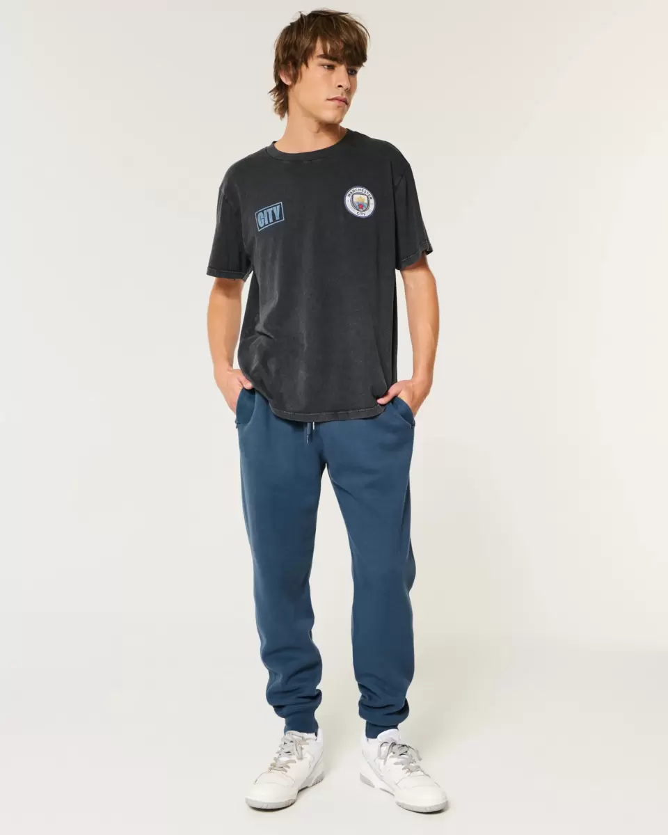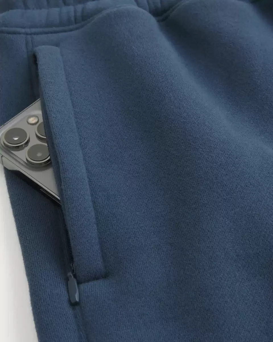 Supermjuka joggingbyxor i fleece med dragsko i midjan, bandfållar och broderad logotyp nära midjan. Fickor. Importerad.