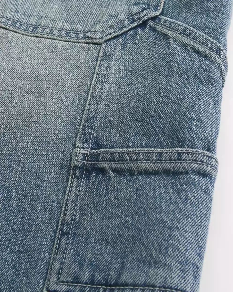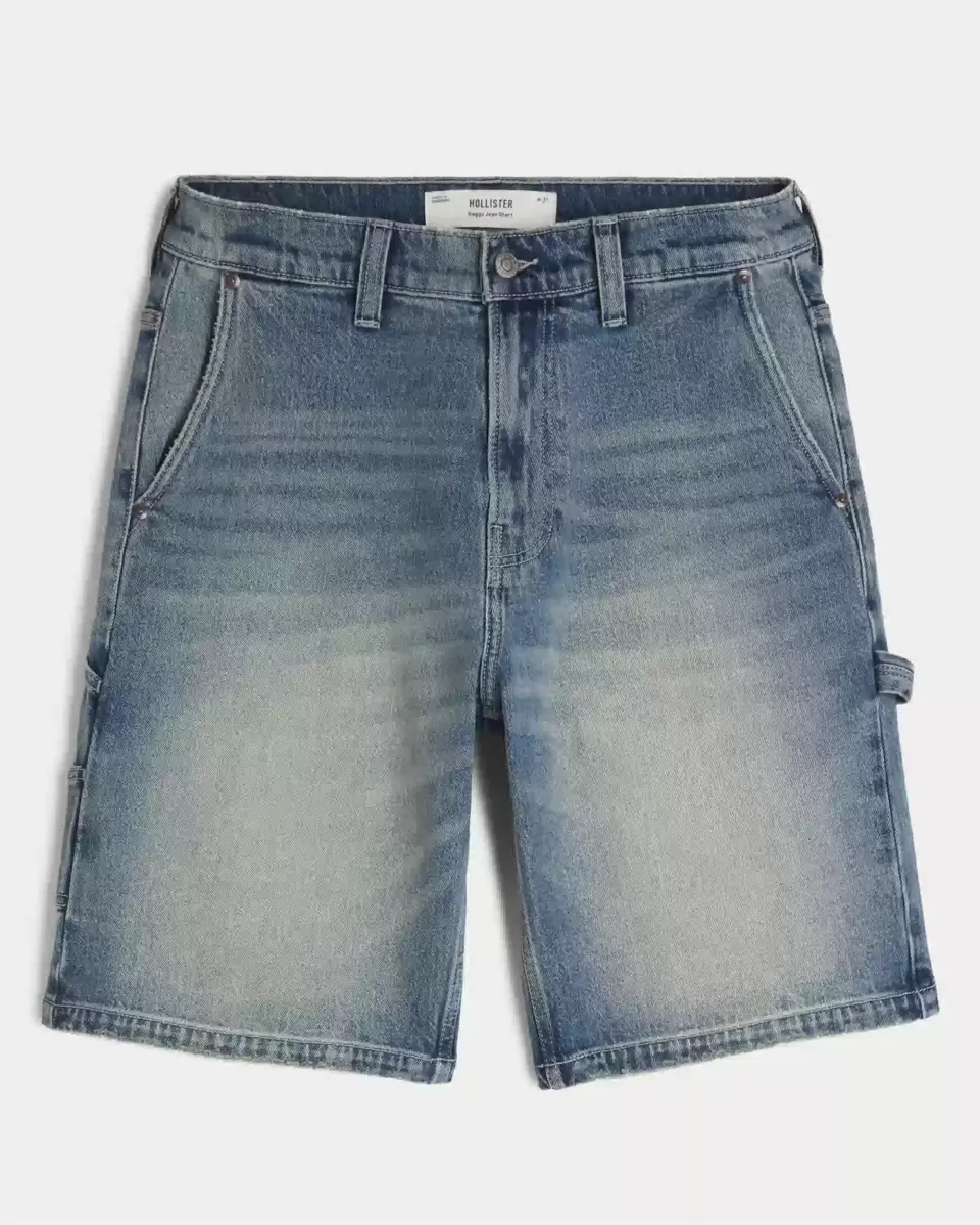 Klassiska jeansshorts i målarstil i medeltvätt, designade med en baggy passform. Vänster ögla detalj, extra fickor, blekning och morrhår. Träffar i knäet. Importerad.