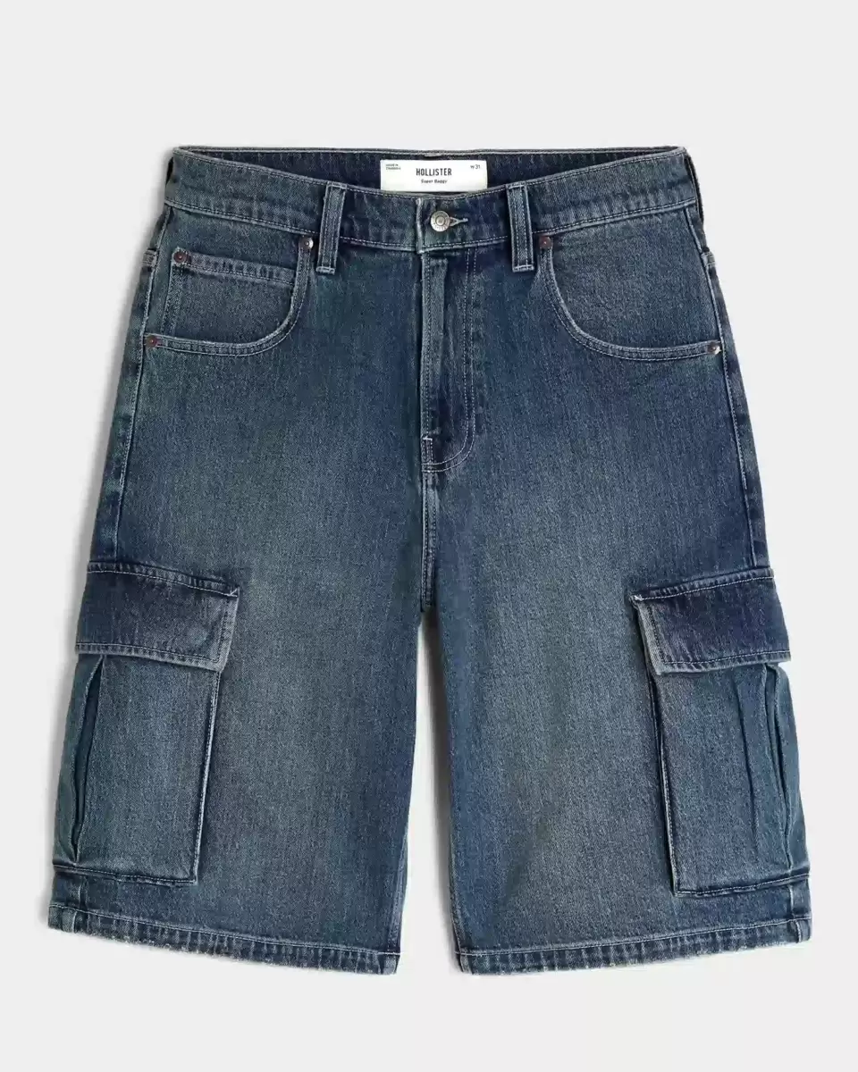 Medium Wash Super Baggy Denim Cargo Shorts