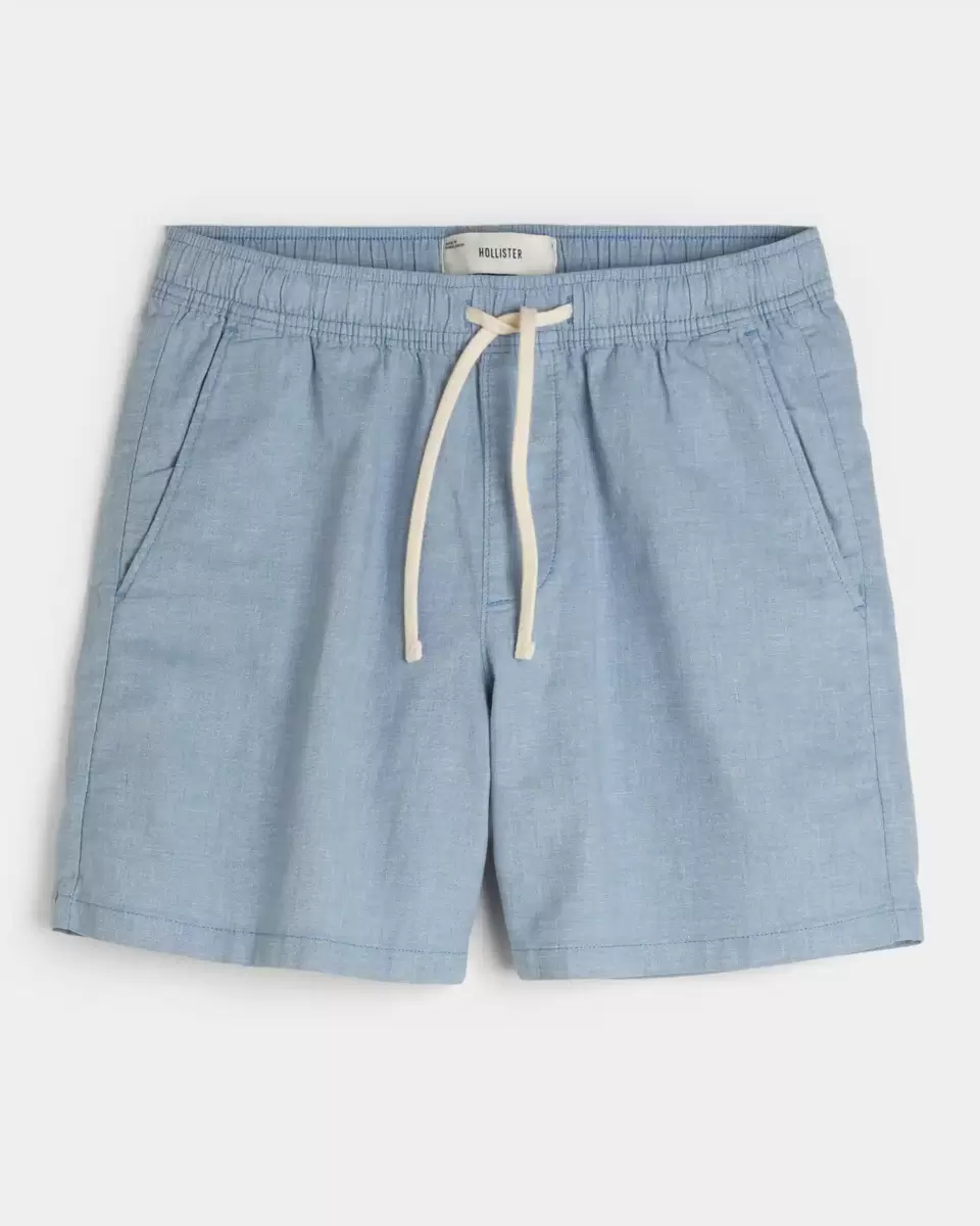 Pådragsshorts i linneblandning på mitten av låret