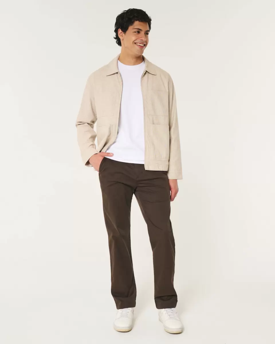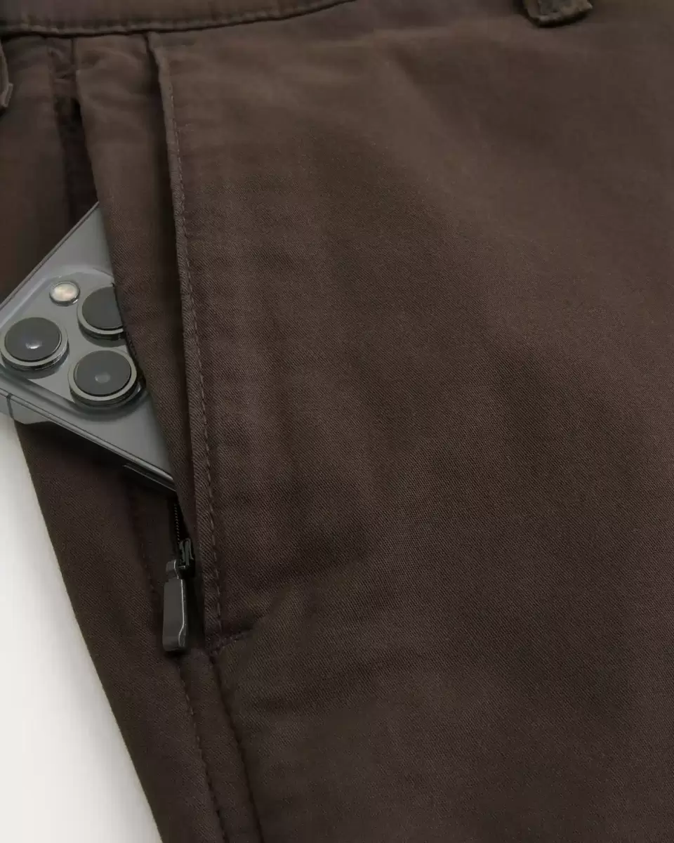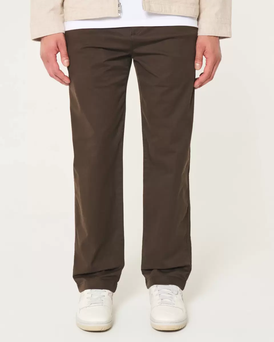 Ultrabekväma chinobyxor i twill med stretch, designade med raka ben uppifrån och ned. Fickor, höger ficka med blixtlås.