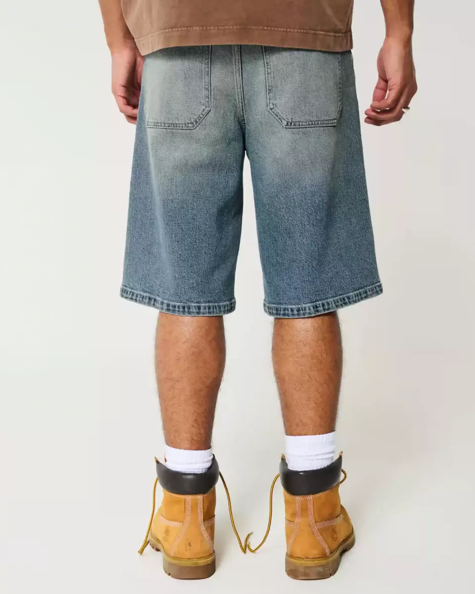 Bekväma jeansshorts i medium tvätt, designade med ett superbaggy ben som träffar under knäet. Officiellt licensierad Tasmanian Devil Taz grafisk broderi, blekning, morrhår. Importerad.