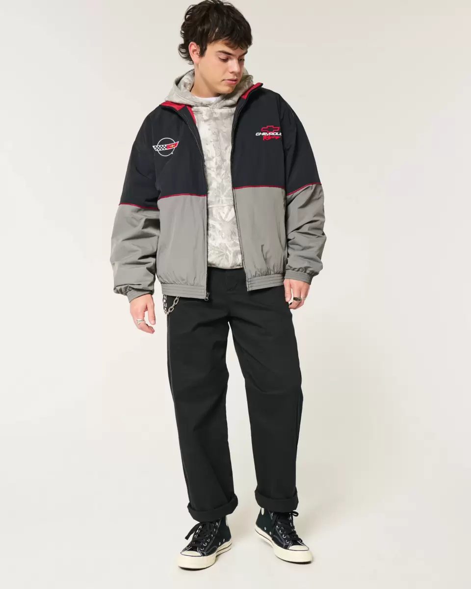 Den här klassiska träningsjackan har officiellt licensierad Chevrolet Racing grafisk broderi fram och bak. Full dragkedja, fickor fram, kantfållar. Importerad.