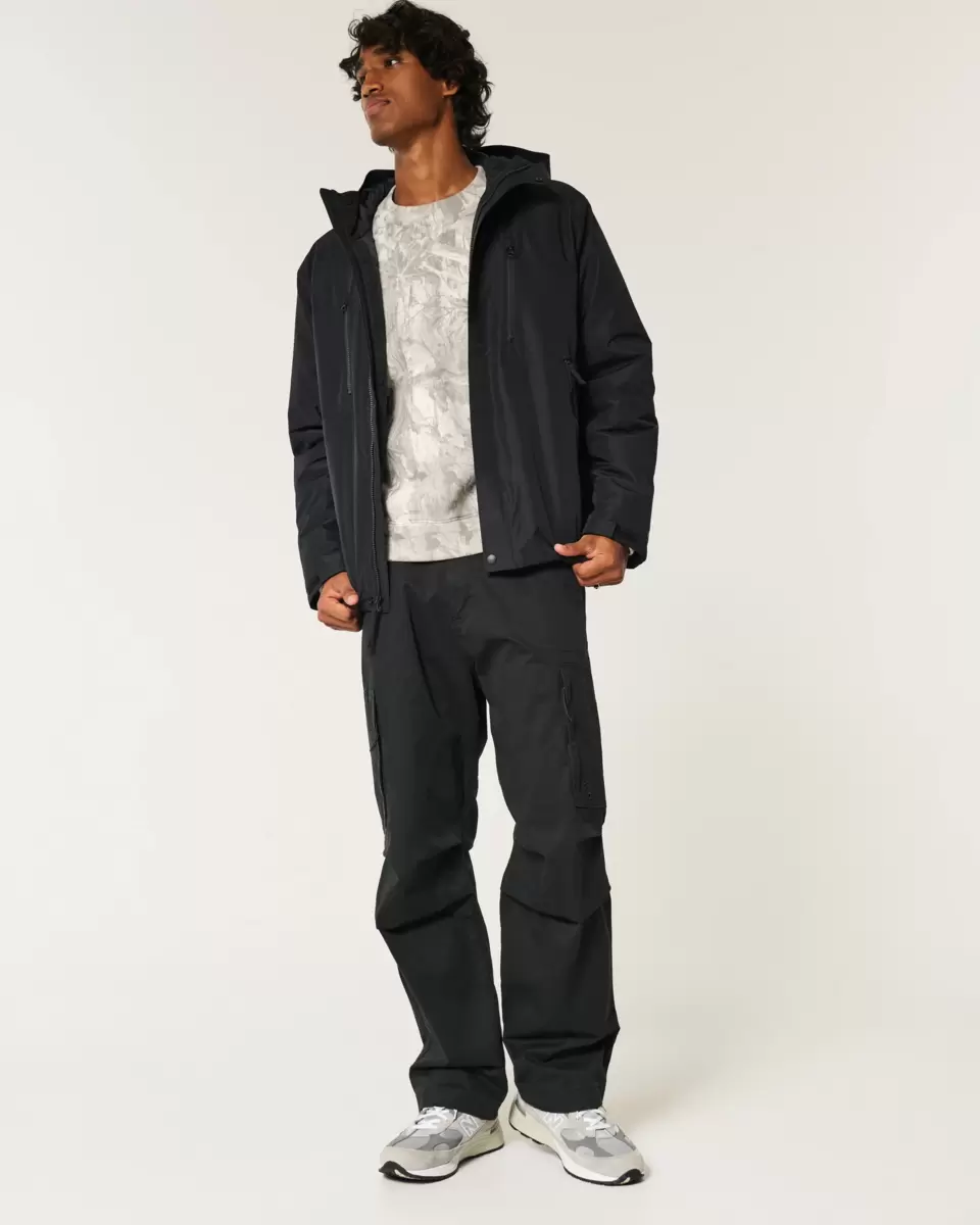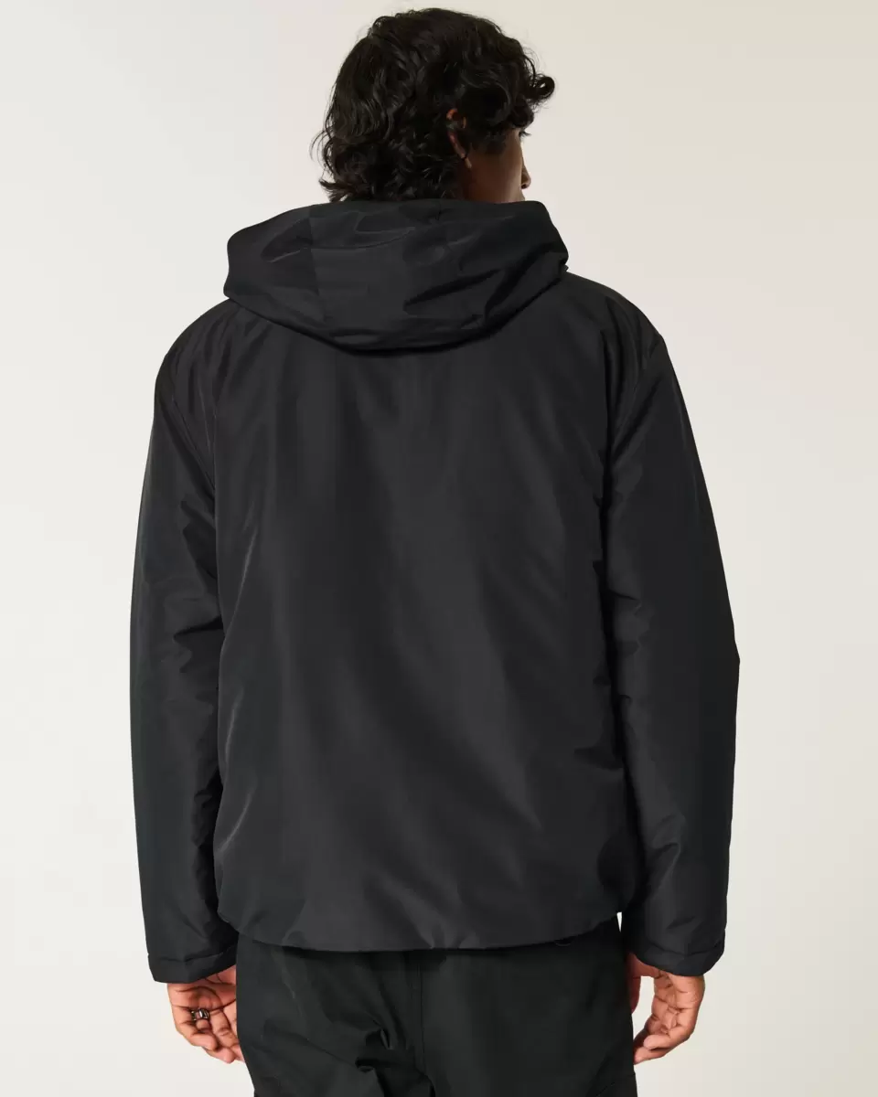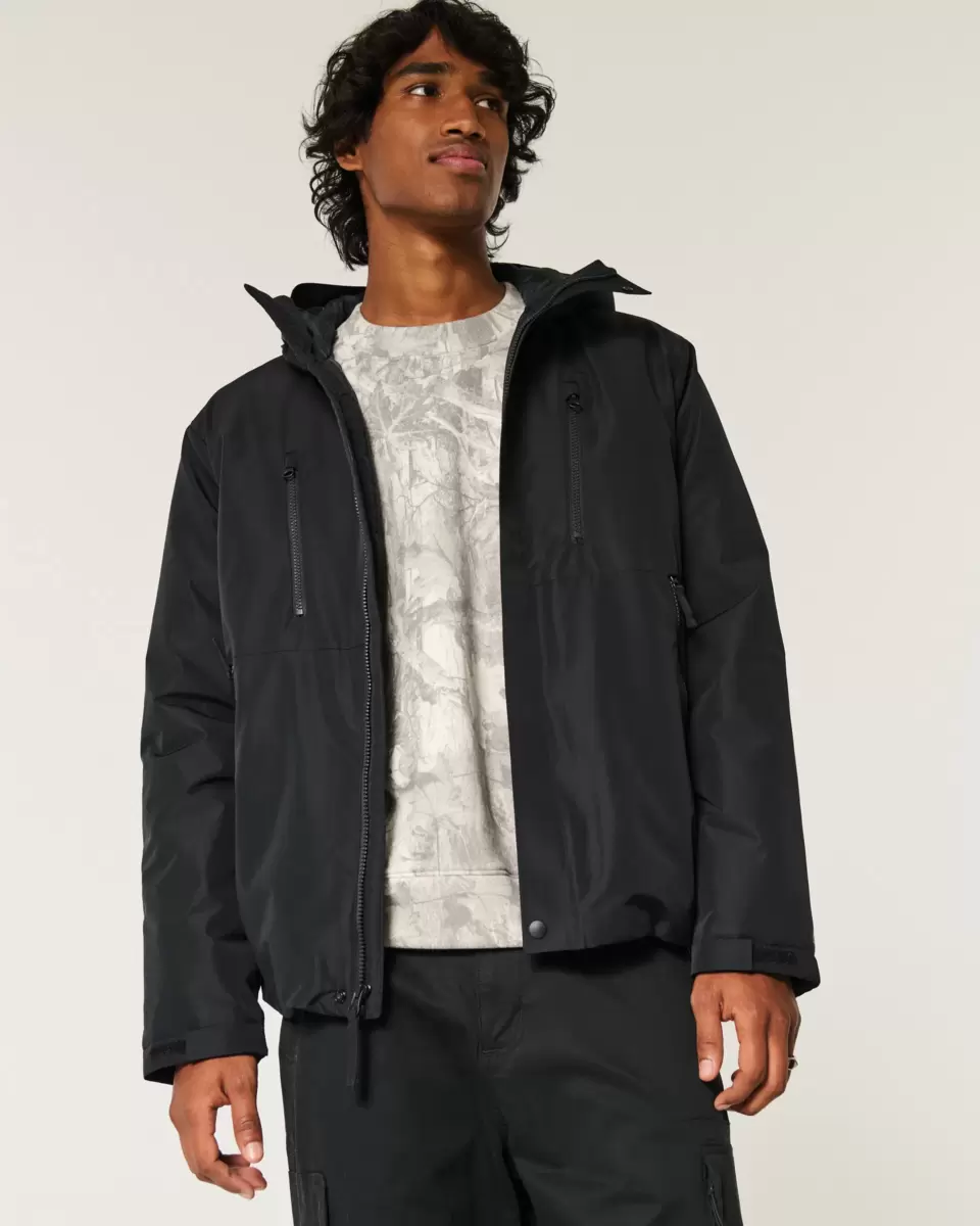 En isolerad skaljacka med huva, bröstfickor med dragkedja och framfickor med dragkedjor. Justerbara kardborrmuddar, full dragkedja med tryckknappar. Importerad.