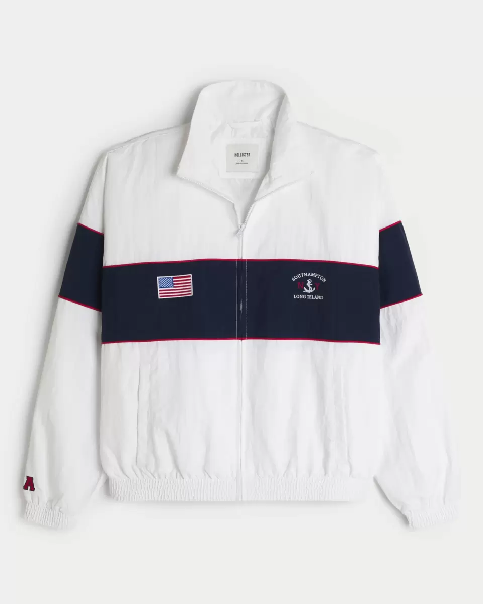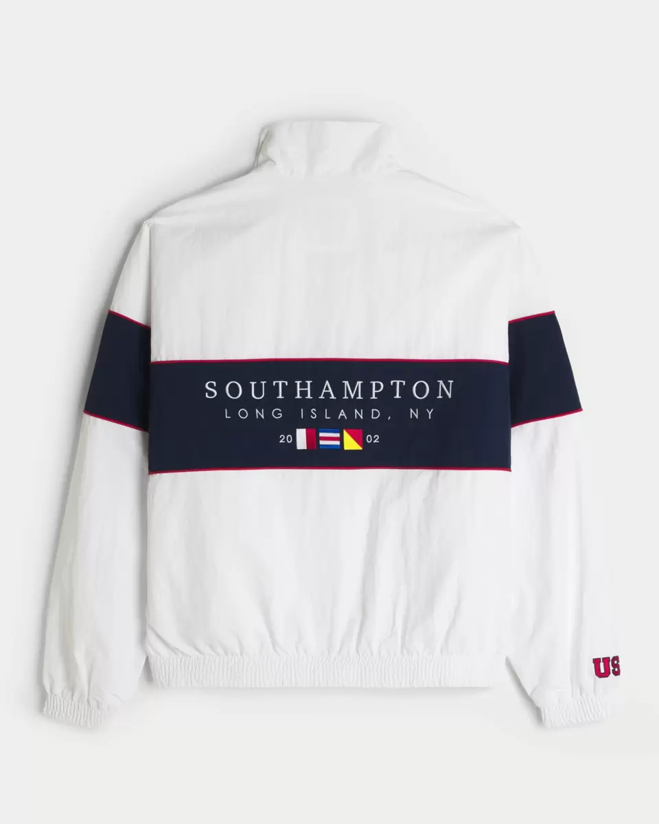 En klassisk jacka med Southampton Long Island NY grafiska broderier fram och bak. Broderad American Flag-grafik, fickor, bandfållar, mock-neck-krage, full dragkedja. Importerad.
