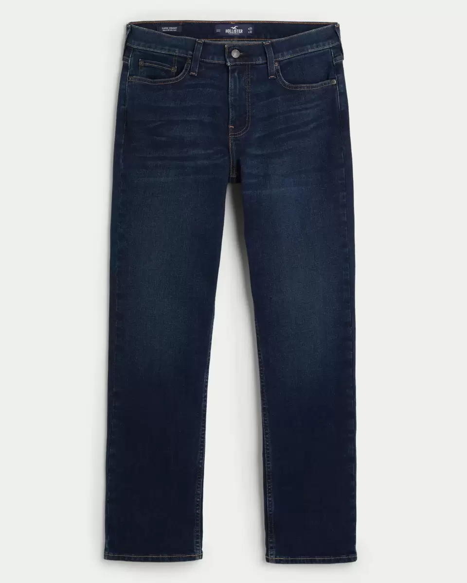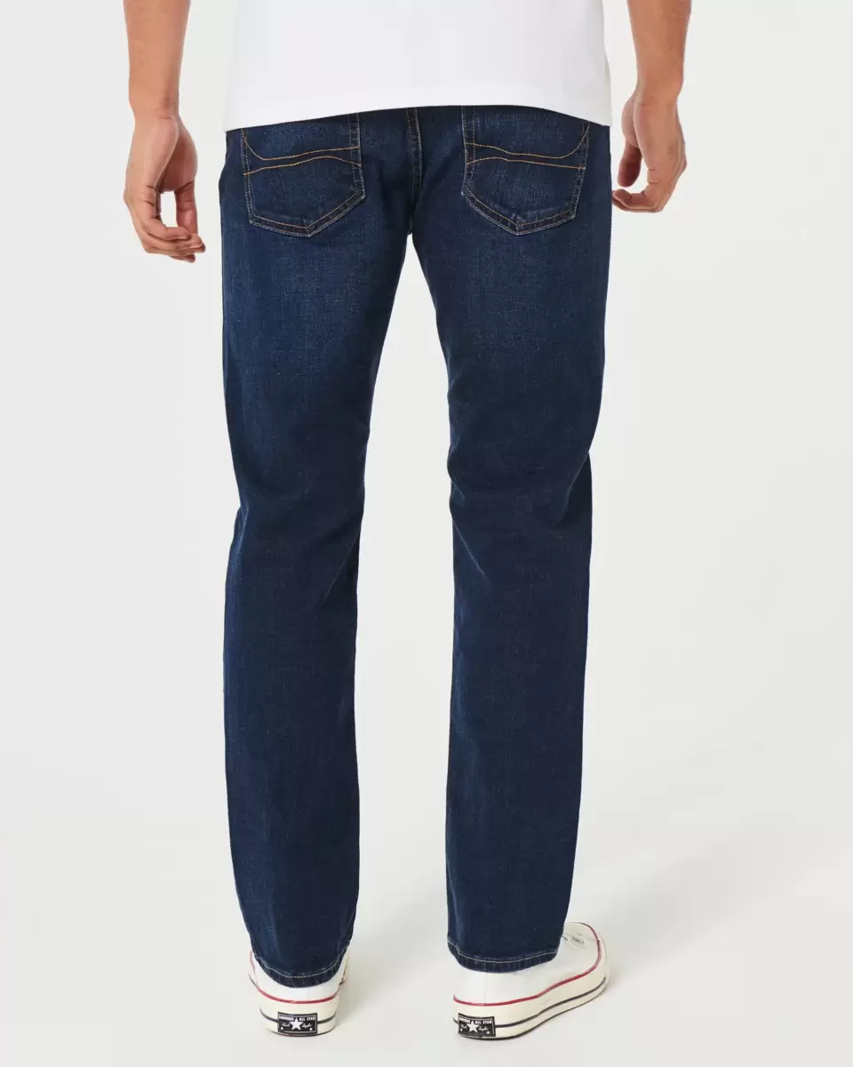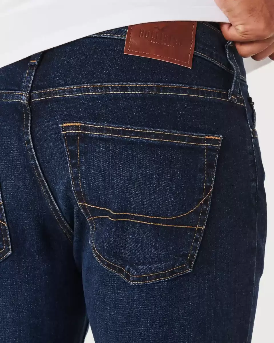 Designad med en rak passform genom höften och låret med en 16,75-tums benöppning, med mörkt tvättad denim tillverkad med Hollister Epic Flex-stretch, femficksstyling och ikoniskt bakfickabroderi. Importerad.