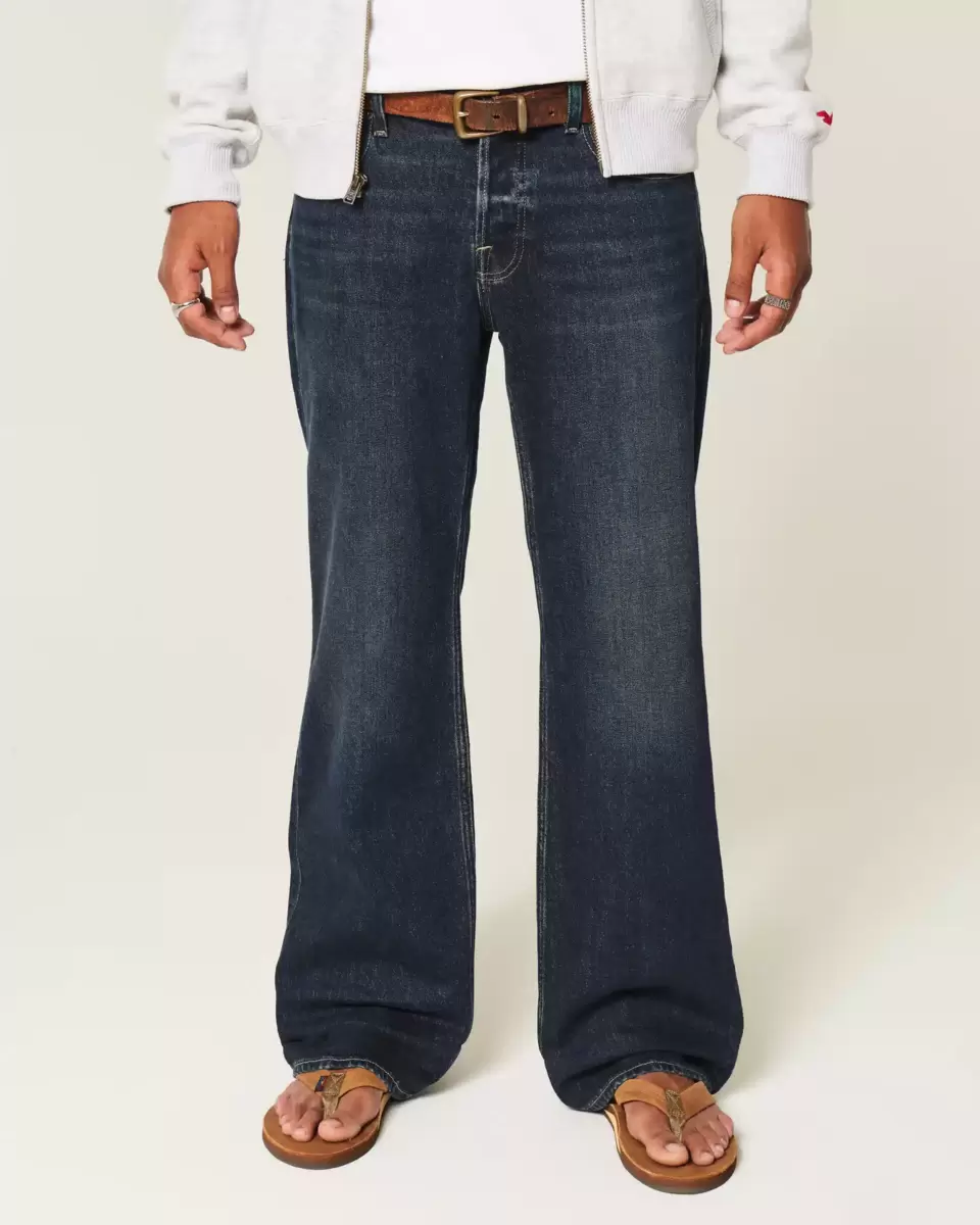Bekväma denimjeans designade med avslappnade ben och stövelöppning. Mörk tvätt med blekning och morrhår. Knappgylf. Trendnedgång. Importerad.