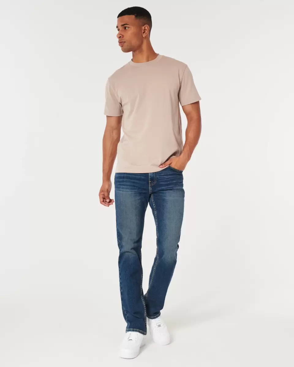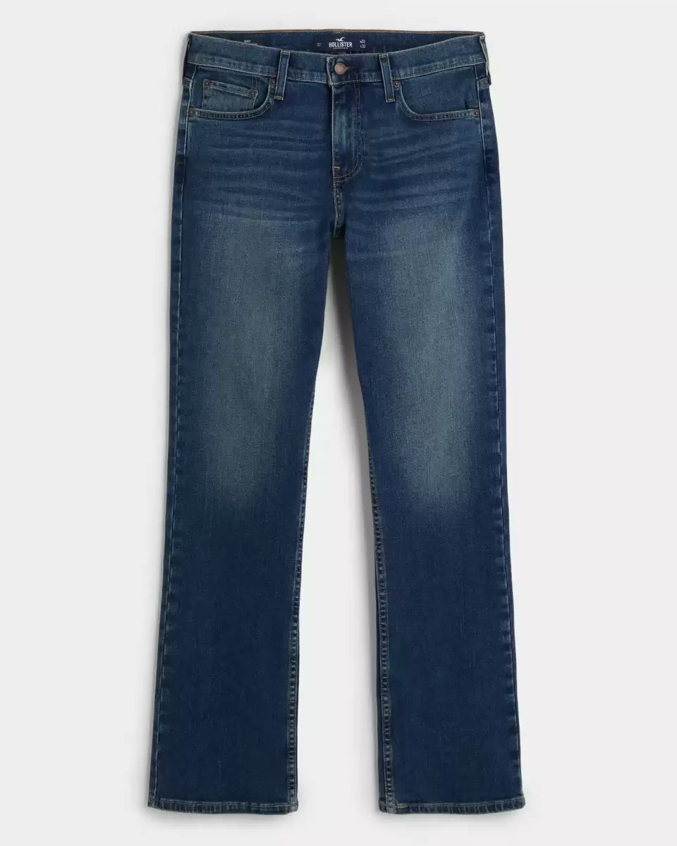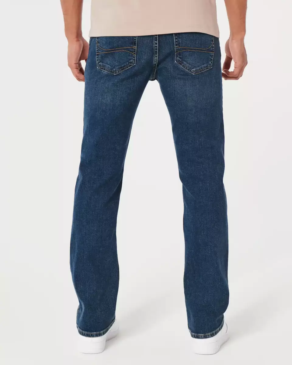 Designad med en avslappnad passform genom höften och låret med en 17,25″ benöppning, med medeltvättad denim gjord med Hollister Epic Flex stretch, blekning och morrhår, femficksstyling och ikoniskt bakfickabroderi Importerad.