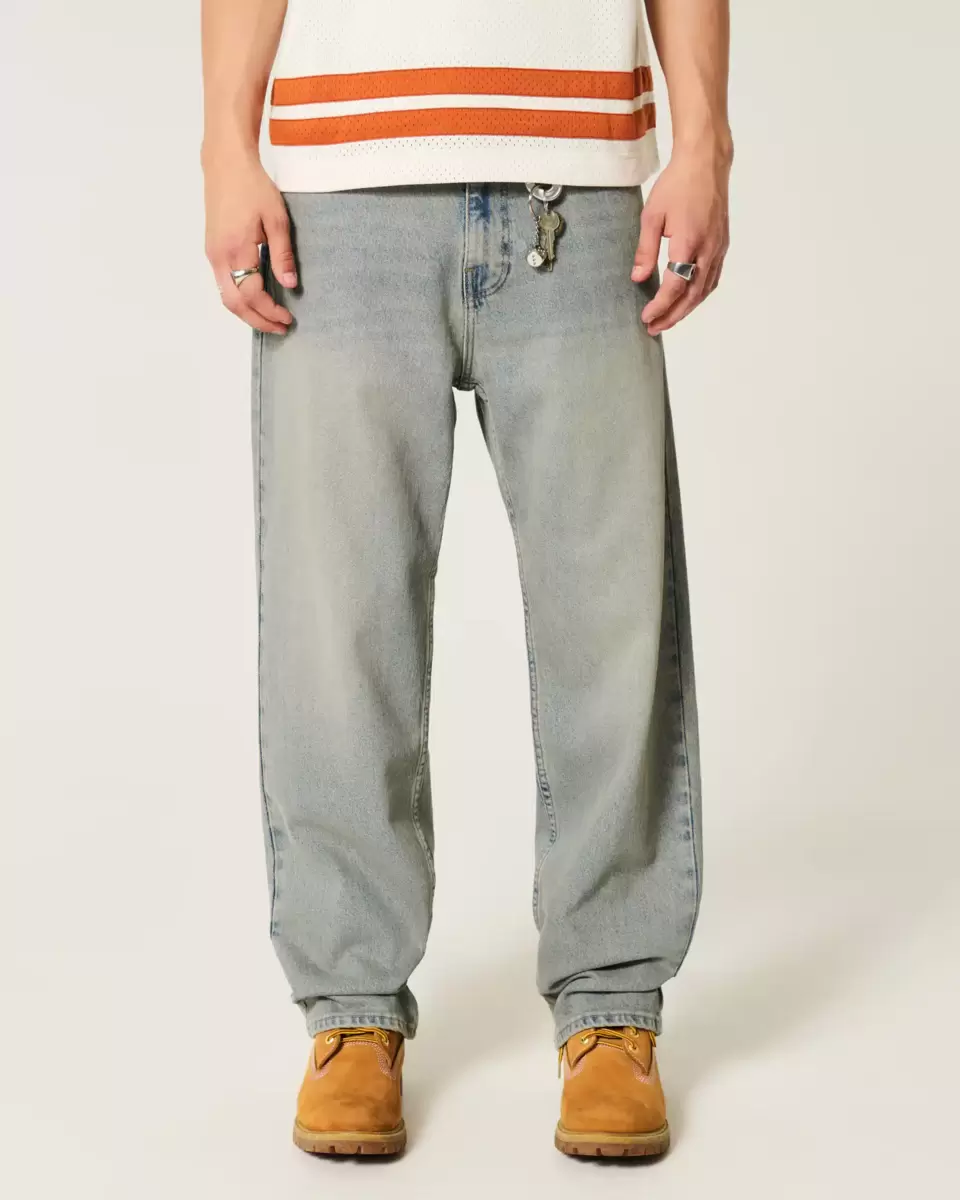 Bekväma jeans med stretch, designade med säckiga ben. Lätt tvättad denim med blekning och morrhår. Importerad.